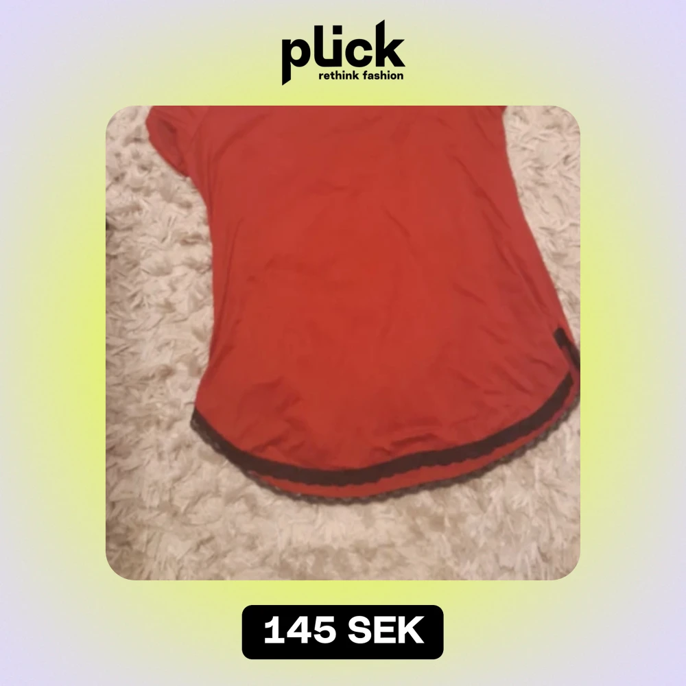 Nytt oanvänt rött med spets längst ytterkanterna och ett hjärta på nattlinnet.