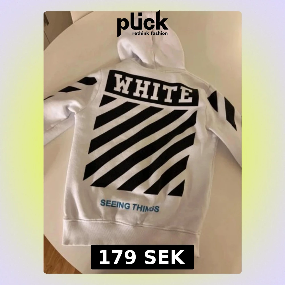En riktigt fräsch off-white hoddie i storlek xs. den har en liten svart fläck som inte syns när man har på sig den men som borde gå bort med vanish eller nått liknande. Först till kvarn!