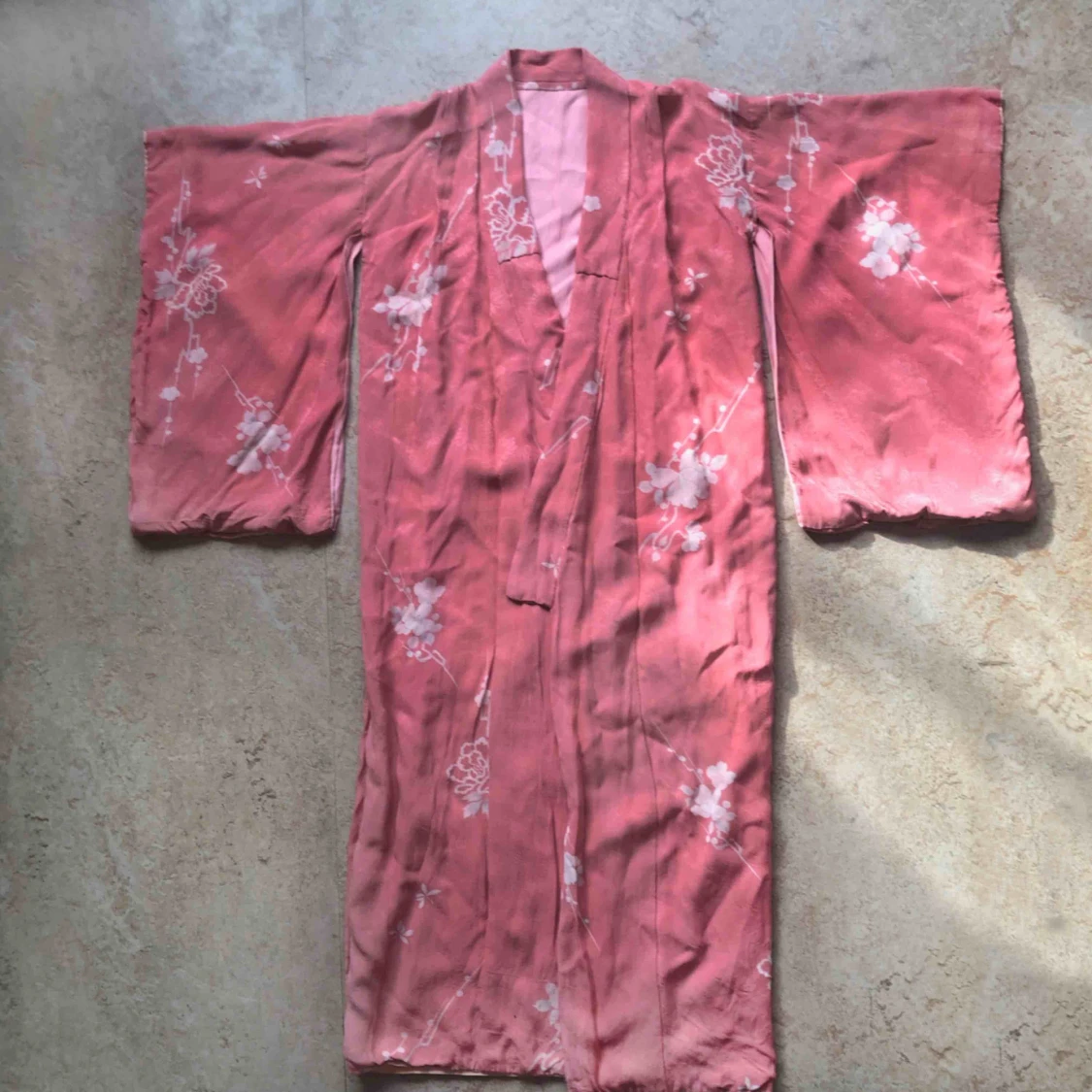 Jättevacker vintage äkta kimono. Är ca 128 cm från axel till längst ner. Väldigt bra skick.