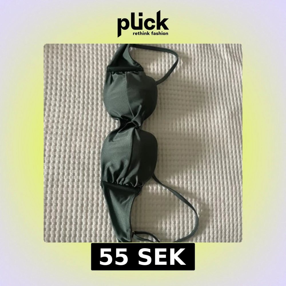 Säljer denna olivgröna bikiniöverdel, knappt använd och har inga defekter, bikinin är från HM och är i storlek 75 C 💚