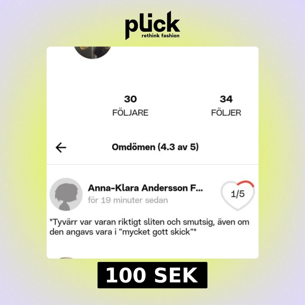 På annonser jag lägger upp så skriver jag alltid vilka defekter grejen jag säljer har eller visar på bild eller båda och. Även plick själv sa att defekterna syntes tydligt på bilderna. Det var ett par mjukisbyxor som såldes! Så rekommenderar till alla er som funderar på att köpa nån av grejerna jag säljer: dubbelkolla alltid bilderna och vad jag skrivit i annonsen tack. Och byxorna va absolut inte "riktigt slitna"