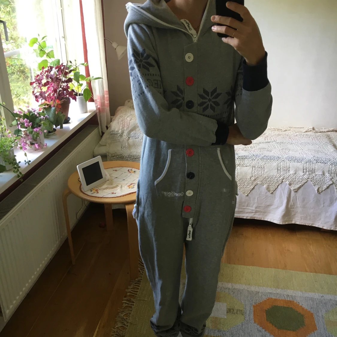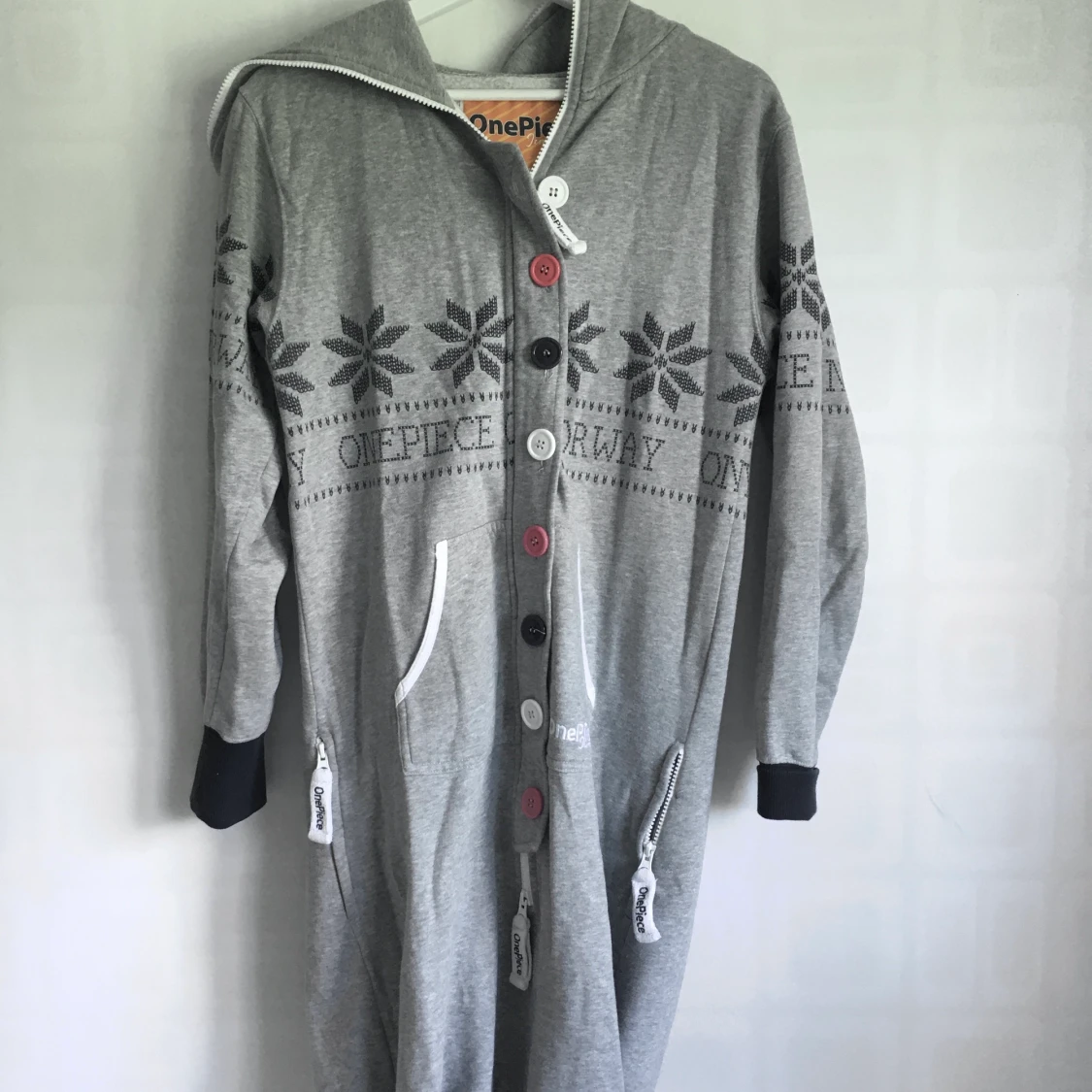 Grå One piece med mörkblå detaljer. Endast använd några få gånger, är alltså i nyskick! Kan mötas upp i Lund elr skicka med post (frakt tillkommer då)☺️