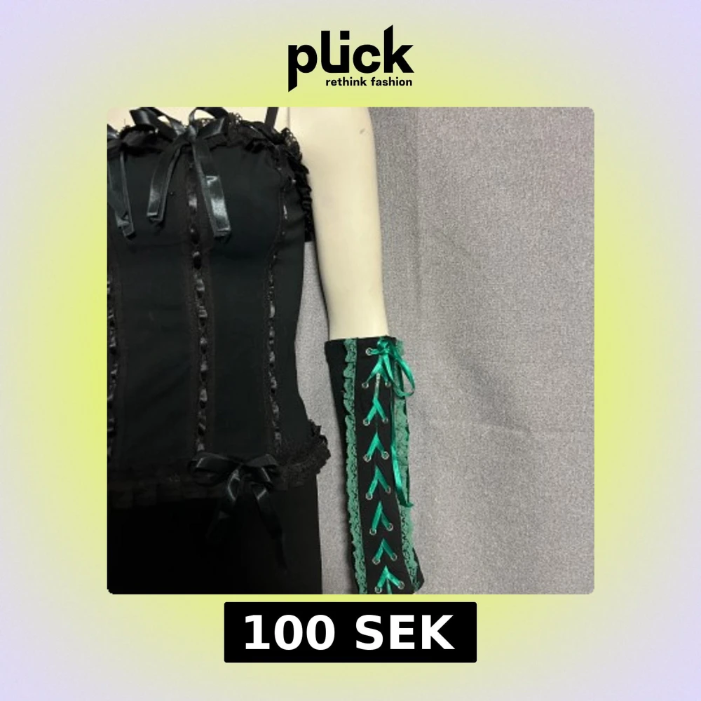 Svarta långa handskar med grön snörning