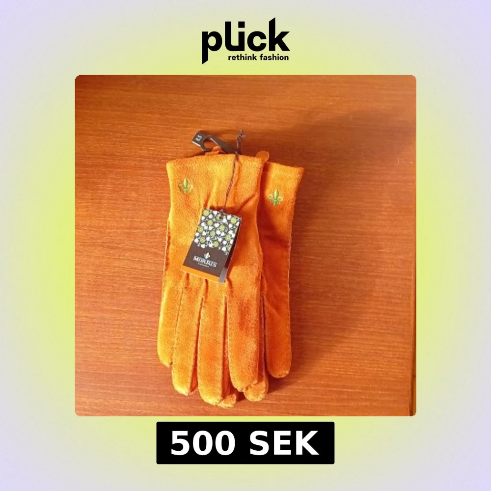 Snygga orangea handskar i skinn från Morris med broderad logga på ovansidan. Handskarna har en klassisk design och storlek 8.5, vilket motsvarar herr M men passar som S. Perfekta för att ge din outfit en färgklick.
