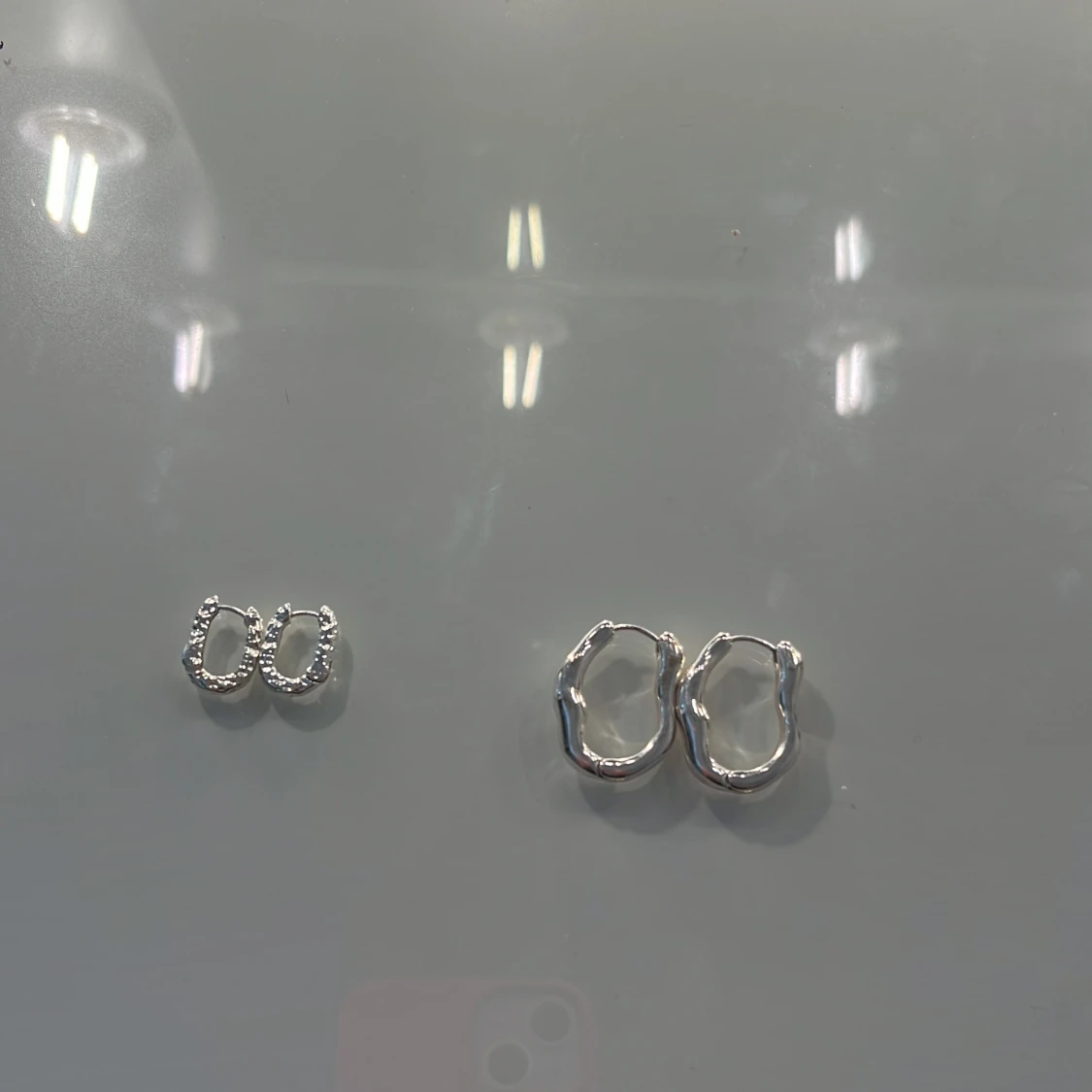 säljer två olika par örhängen! båda i silver. på bild nummer två ser man den stora och på tre ser man den lilla! på sista bilden ser ni hur de ser ut tillsammans!