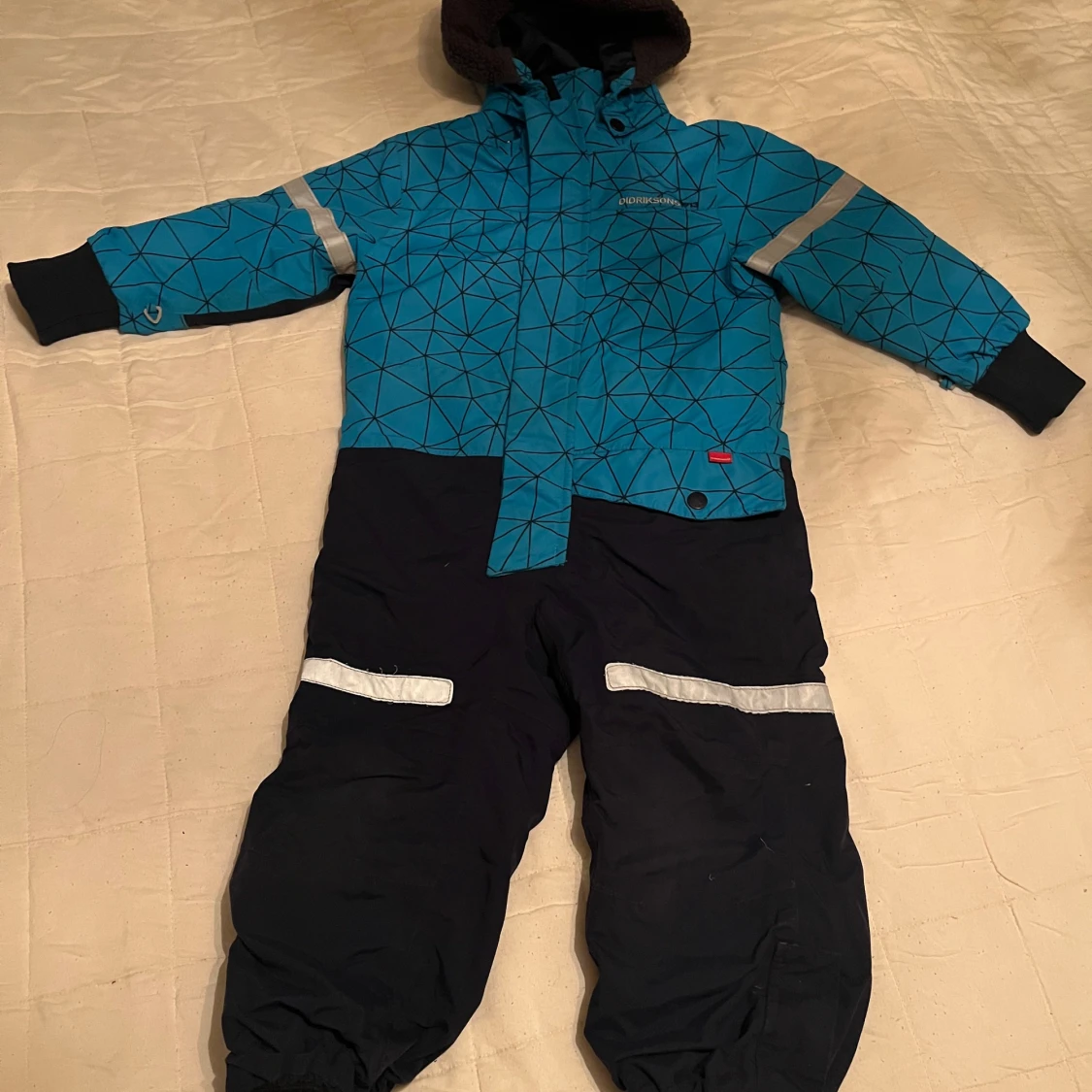 Overall i fint skick, blå med mönster, märke Didriksons.