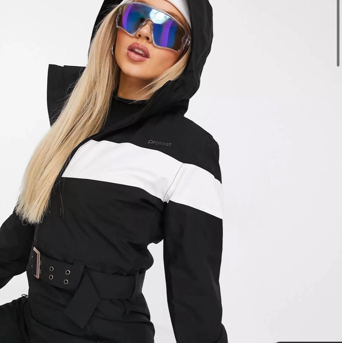 Snygg skidoverall, oanvänd med prislappar kvar. Storlek 38 men liten i storleken. Färgen är korall/röd.