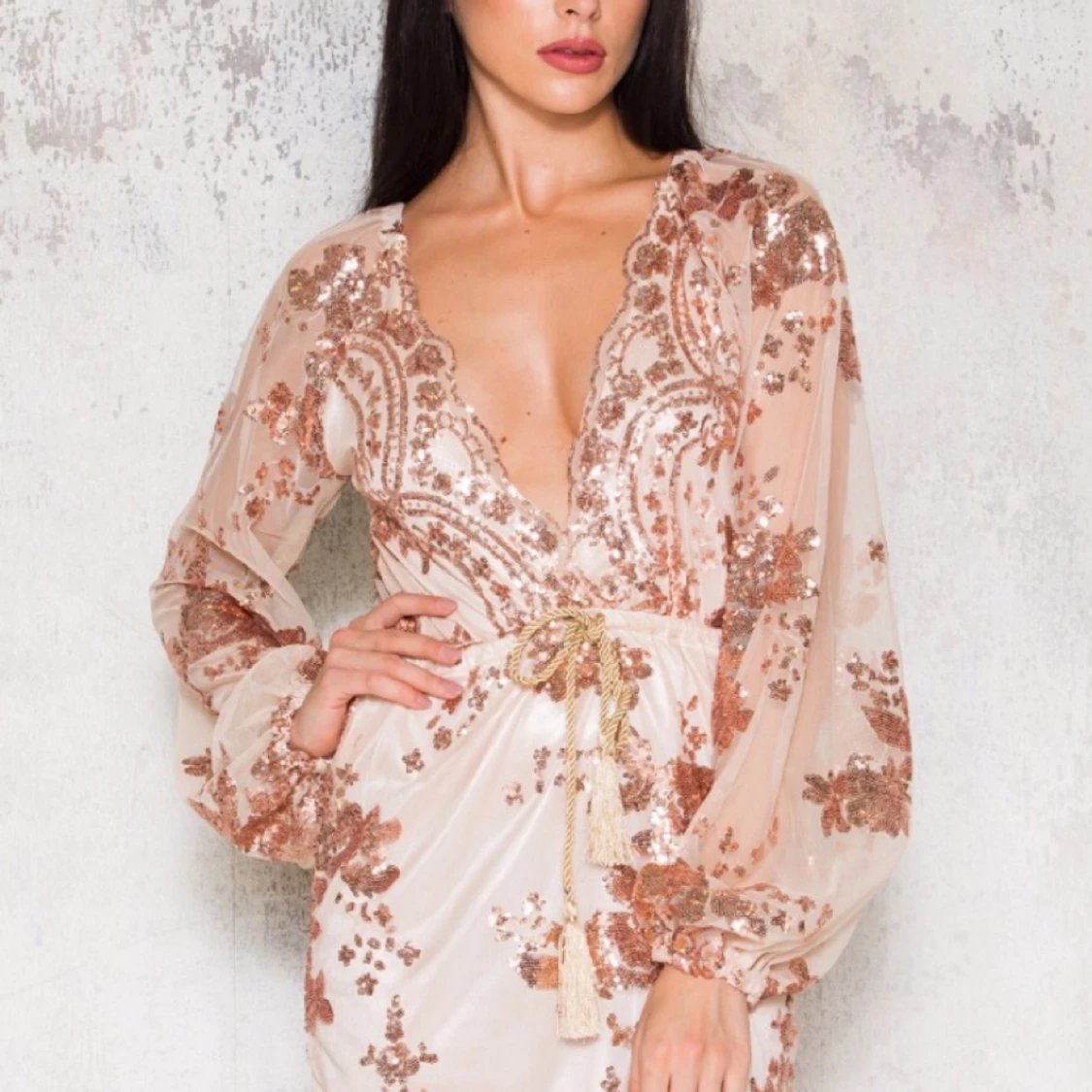 Säljer en paljett dress som är använd en gång (på nyår) nypris för denna är 800kr, jag säljer den för 385kr.