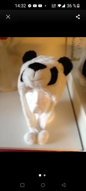 Gullig mössa i fuskpäls för barn. Knytbanden med gulliga bollar fungerar som halsduk. Nyskick, aldrig använd