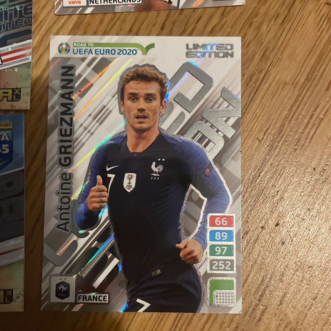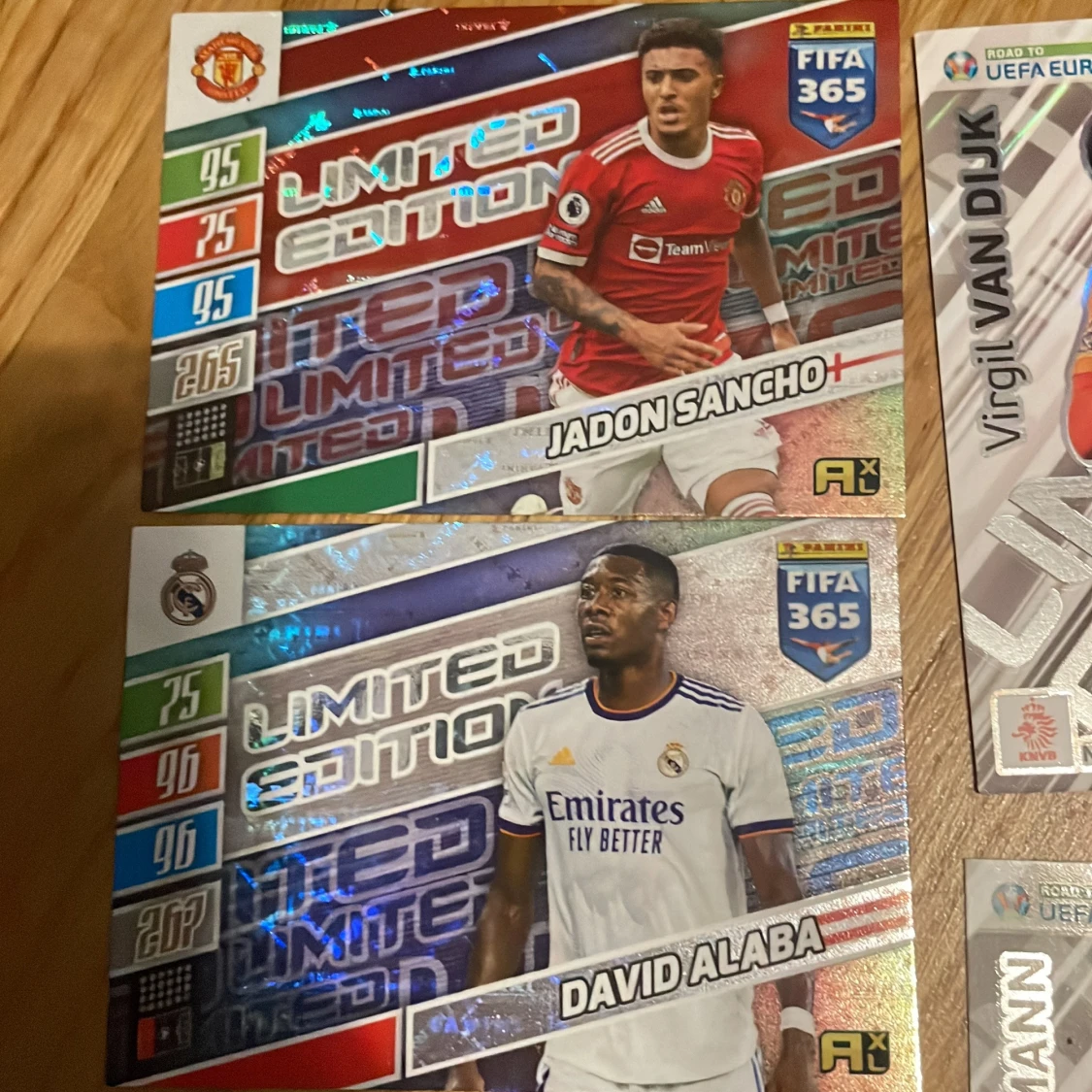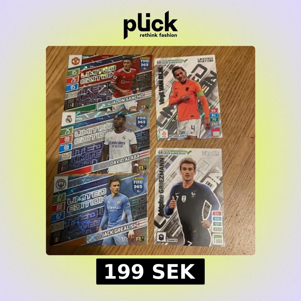 Samling av exklusiva Limited Edition fotbollskort med stjärnor som Jadon Sancho, David Alaba, Jack Grealish, Virgil van Dijk och Antoine Griezmann. Perfekt för unga fotbollsfans och samlare som vill ha något unikt och glittrande i sin kollektion.