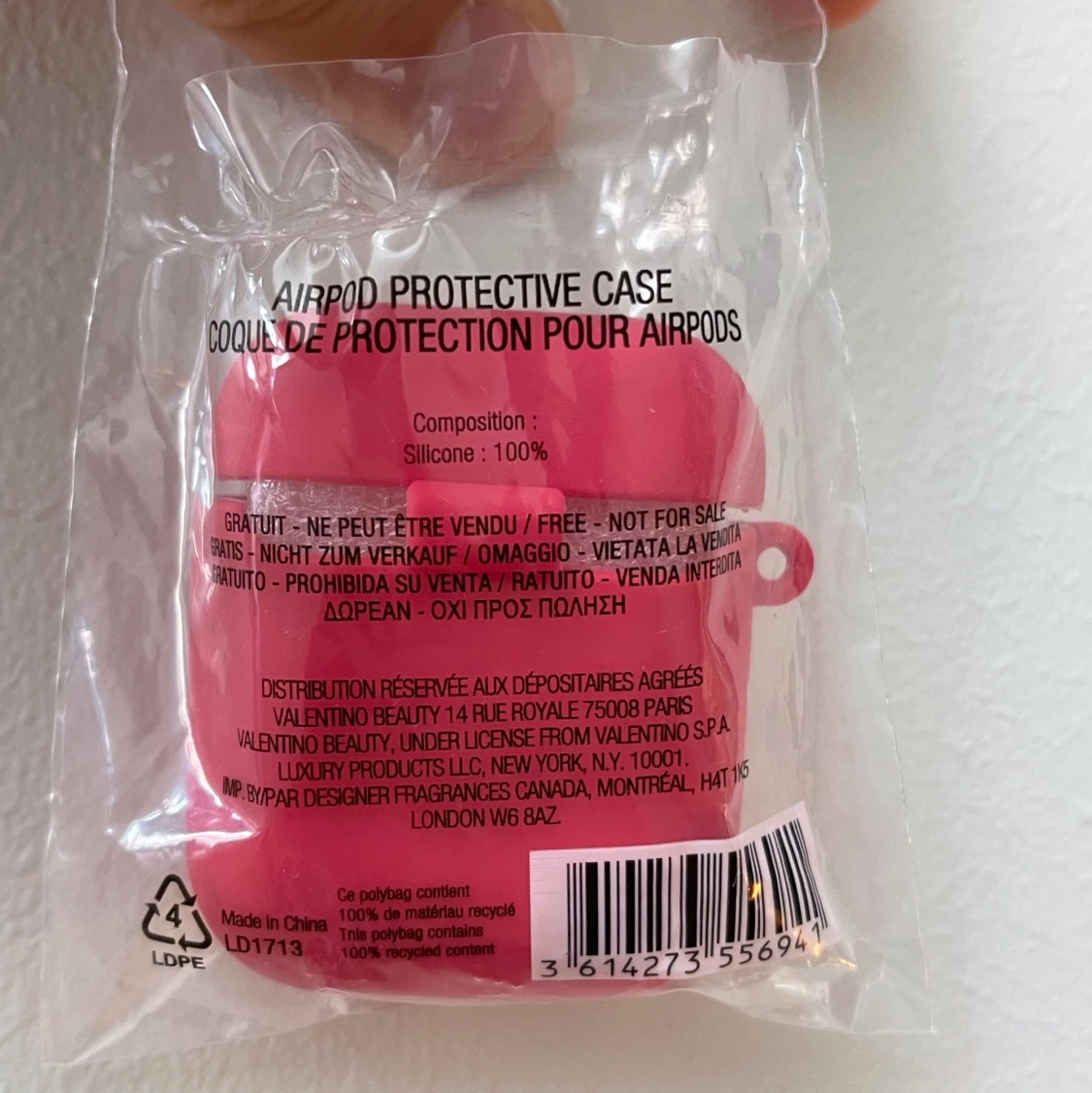 Ett rosa airpods case från Valentino som jag fick i köpet när jag köpte en parfym från Valentino på Åhlens. Eftersom jag inte har airpods hoppas jag kunna sälja den här. Har sökt runt på internet och har sett att man kan köpa den på Lyko för 700kr, den är dock helt slutsåld. Jag kan mötas upp i Stockholm eller frakta den ifall köparen står för frakt.