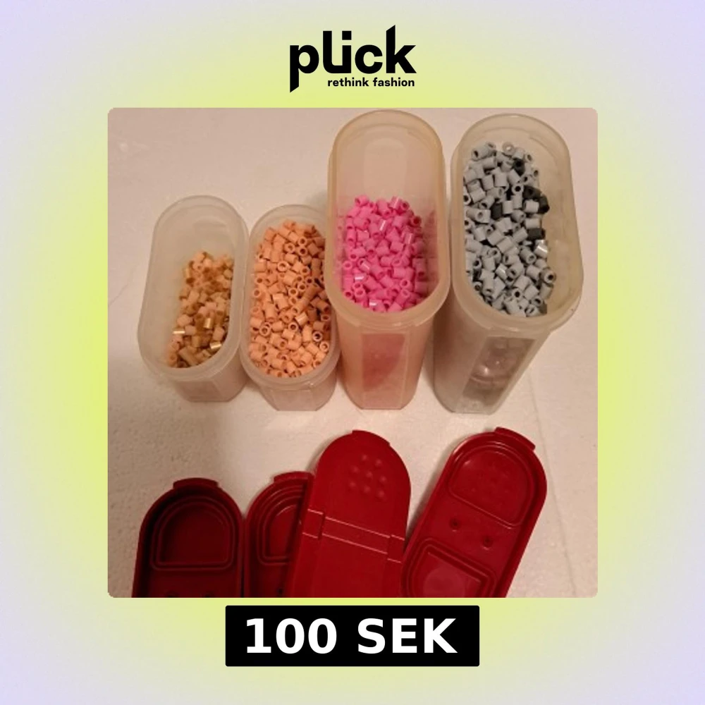 Jag säljer 4 Tupperware kryddburkar 2 stora och 2 små med nabbi pärlor, rosa, grå i 2 toner, persikofärgade och guldiga.