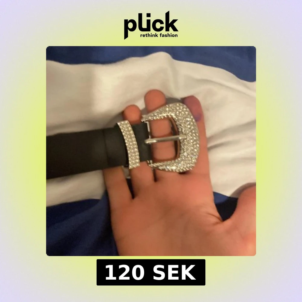 Snyggt svart bälte från BikBok med ett glittrigt spänne som ger en extra touch av glamour. Perfekt för att lyfta vilken outfit som helst. Bältet är i storlek XS-S och har en klassisk design med flera hål för justering.