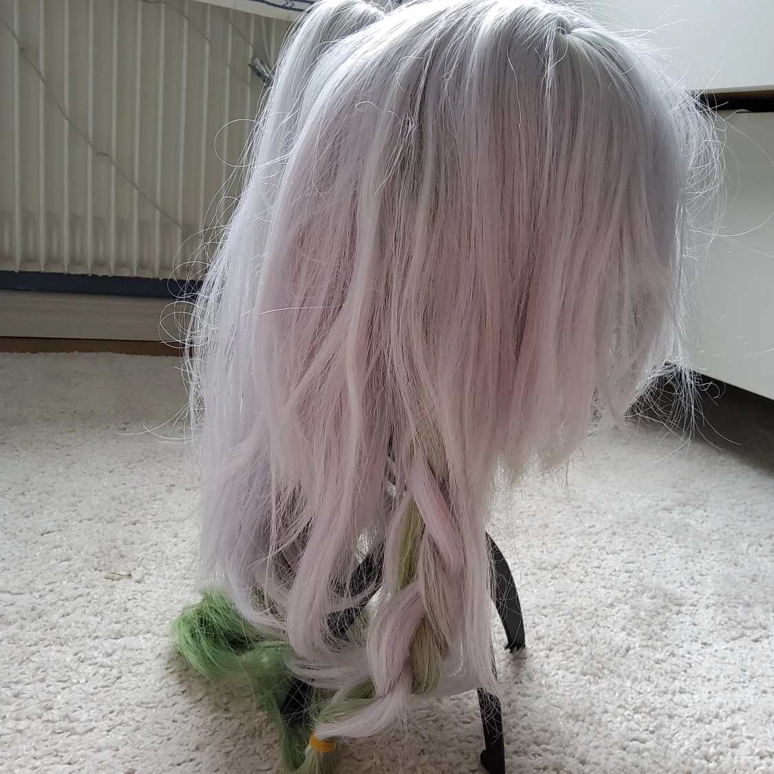 Jättefin peruk som inte kommer till användning. Är köpt på Plick då den användes 2 ggr av säljaren. Jag har ej använt den förrutom att ta bilder en gång. Är gjord till en genshin karaktär men kan nog användas till annat