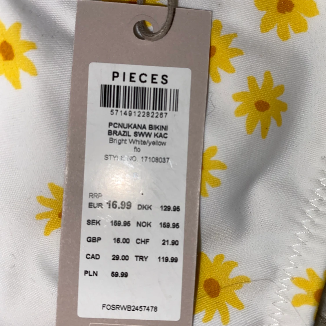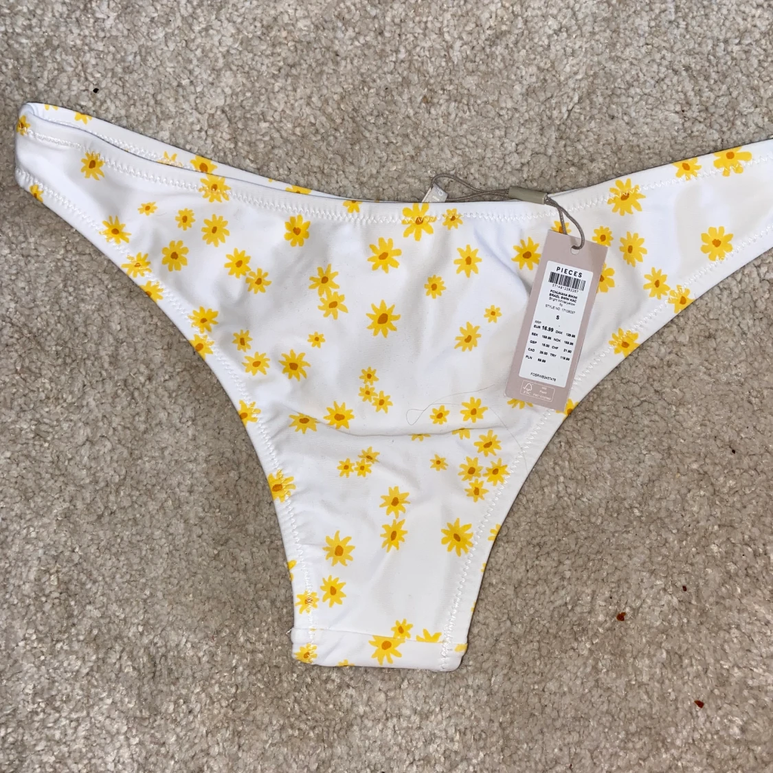 Ett par vita bikinitrosor med gula blommor på. Superfina och bra material. Storlek S men känns ganska små i storleken. Självklart aldrig använda, med lappen kvar!🤍