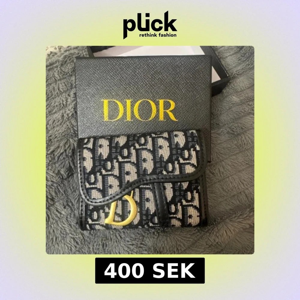 Snygg plånbok med klassiskt monogrammönster i svart och beige. Plånboken har guldfärgad D-detalj framtill, flera fack för kort och ID, samt svart skinn på insidan. Helt oanvänd och redo att skickas!