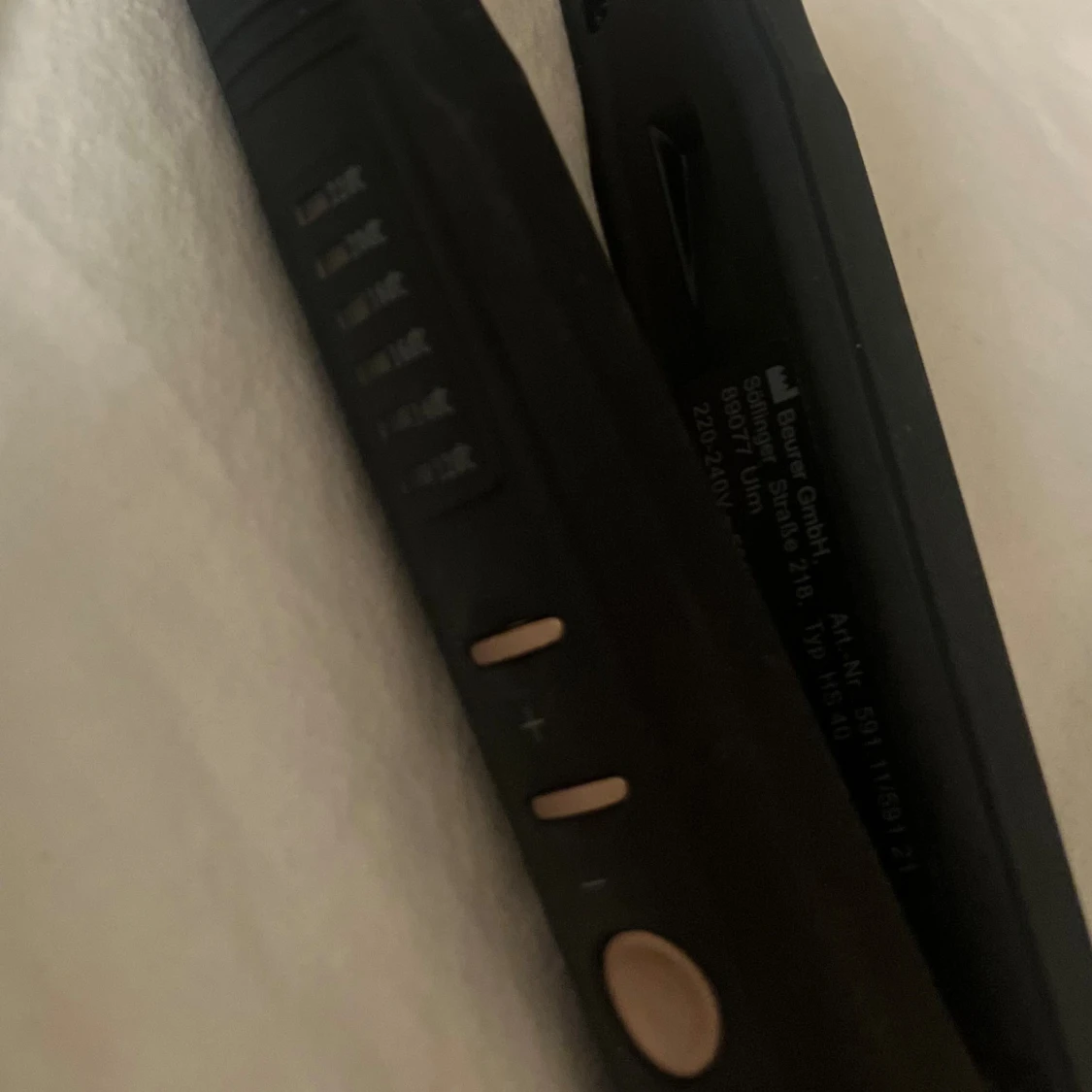 Plattång med märke beurer. Den fungerar super bra. Haft den i 1 år.