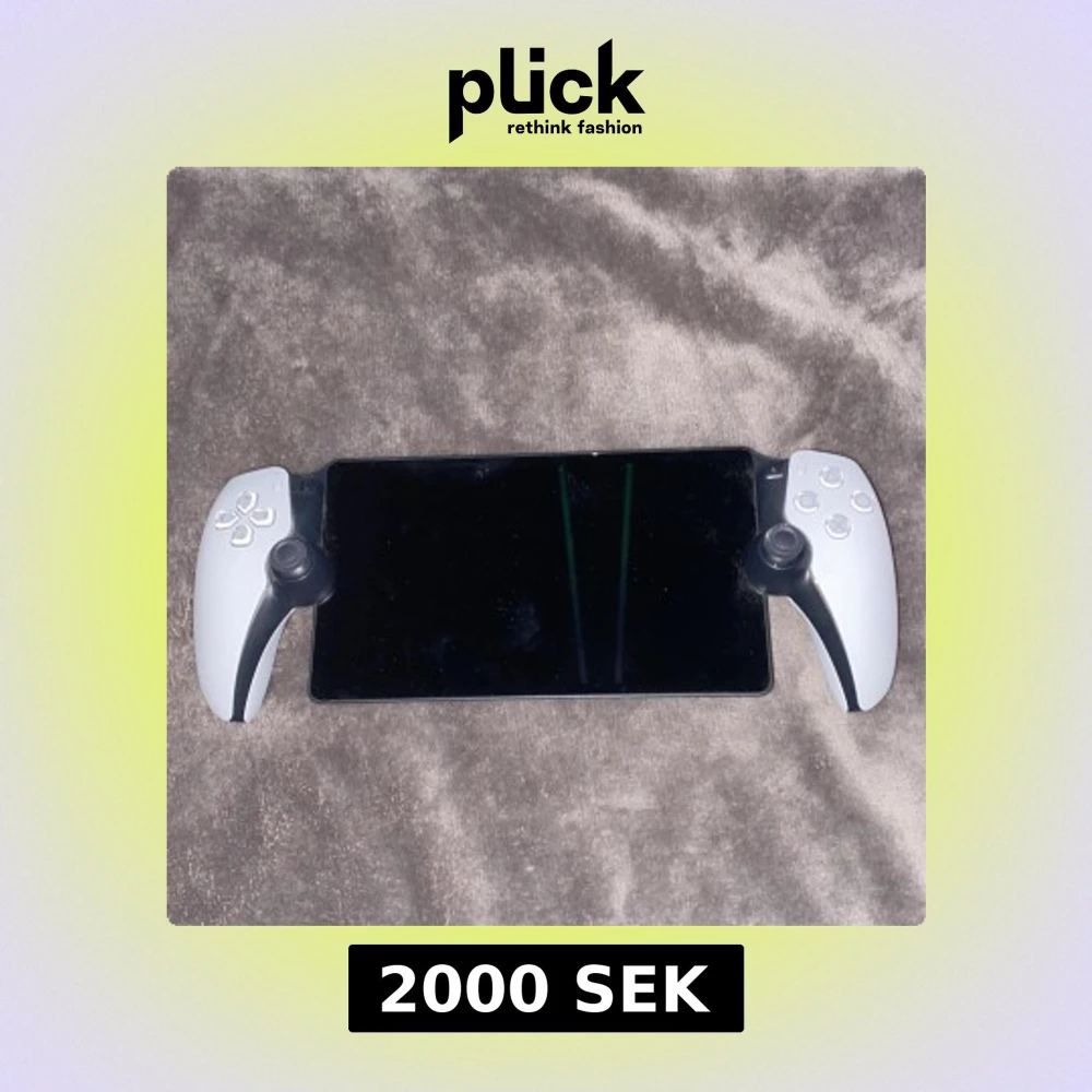Bilderna visar en handhållen spelkonsol med vita kontroller på sidorna och en stor skärm i mitten. Produkten ser modern ut och är perfekt för gaming på språng. Passar dig som gillar att spela var du än är. Kan gå ner i pris