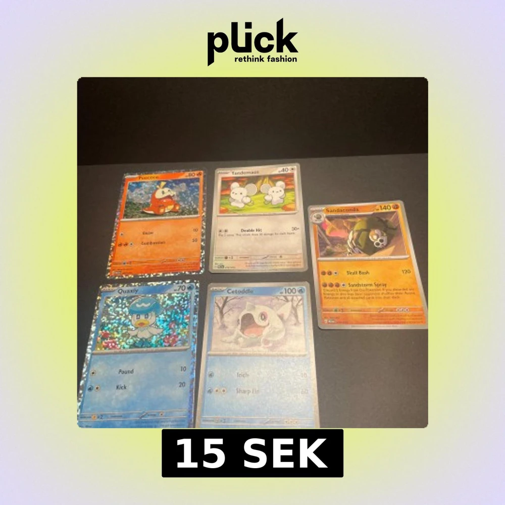 Samling med Pokémon-kort från McDonald's 2023, perfekt för dig som älskar att samla, spela och byta kort med vänner! Upptäck coola karaktärer som Fuecoco, Quaxly och Sandaconda. Roligt och färgglatt för både nya och erfarna Pokémon-fans.