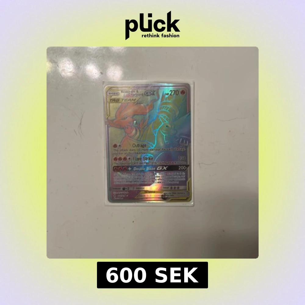 Cool och glittrig Pokémonkort med Reshiram & Charizard GX! Perfekt för samlare och fans som vill ha en kraftfull och snygg TAG TEAM till sin samling. Kortet har häftiga attacker och är i fint skick – ett måste för alla Pokémon-entusiaster!