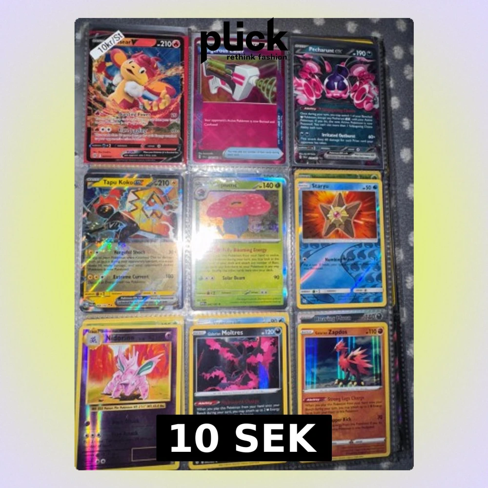 Lite olika pokemon kort. Kan köpas enskilda eller paket. Även stor del utav celebrations settet finns. För frågor om specifika kort skriv PM. Korten kostar allt från 10kr/st till 500kr/st. Finns fler i pärmen men fick bara lägga upp 7 bilder. Fler bilder kan skickas vid förfrågan. Säg vad som intresserar dig så fixar vi ett paket eller enskilt kort.