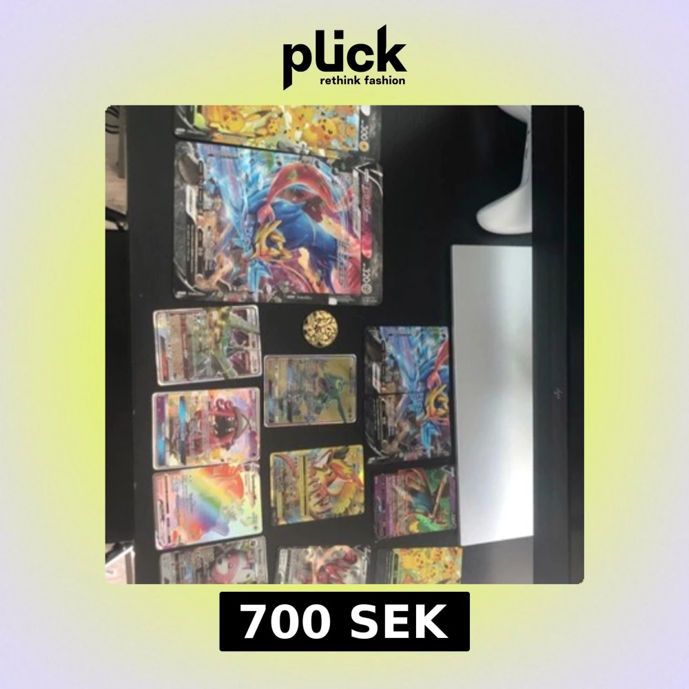 Färgstark samling Pokémonkort med flera V-Union, GX, EX och V-kort, inklusive Pikachu, Zacian, Rayquaza och fler. Perfekt för dig som älskar Pokémon och vill boosta din samling med coola och sällsynta kort. Passar både samlare och spelare! Annars kostar allt 1500kr. Så jättebra pris mer frågor kan ställas.👍