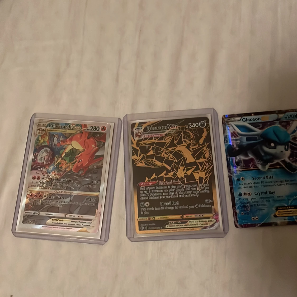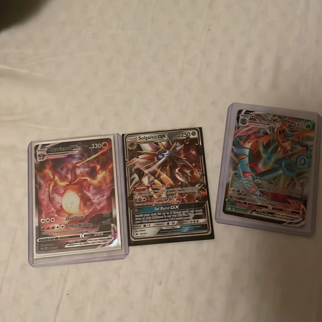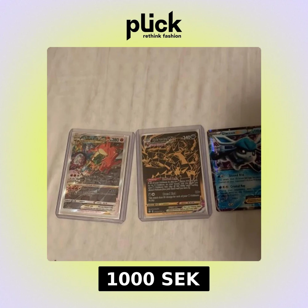 Samling av Pokémonkort i plastfickor, inklusive kort med holografiska och färgglada motiv. Perfekt för samlare eller Pokémon-entusiaster som vill utöka sin kollektion.