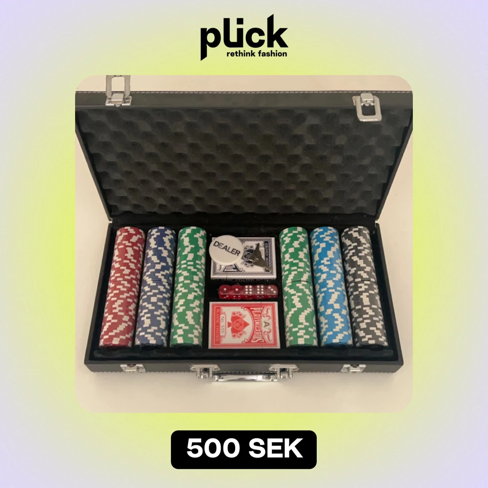Oöppnatt pokerset med plasten kvar, ursprungligen köpt för 1000kr