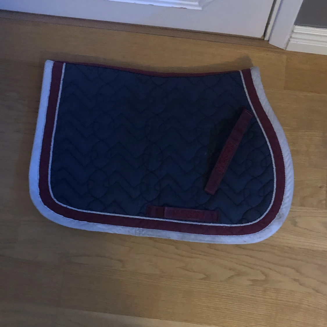 Ett schabrak från Jacson i färg vit, röd marinblå. Lite smutsig. Säljs pga: kommer ej till användning. Storlek:ponny färg: marinblå, röd, vit. Säljs för 100 kr