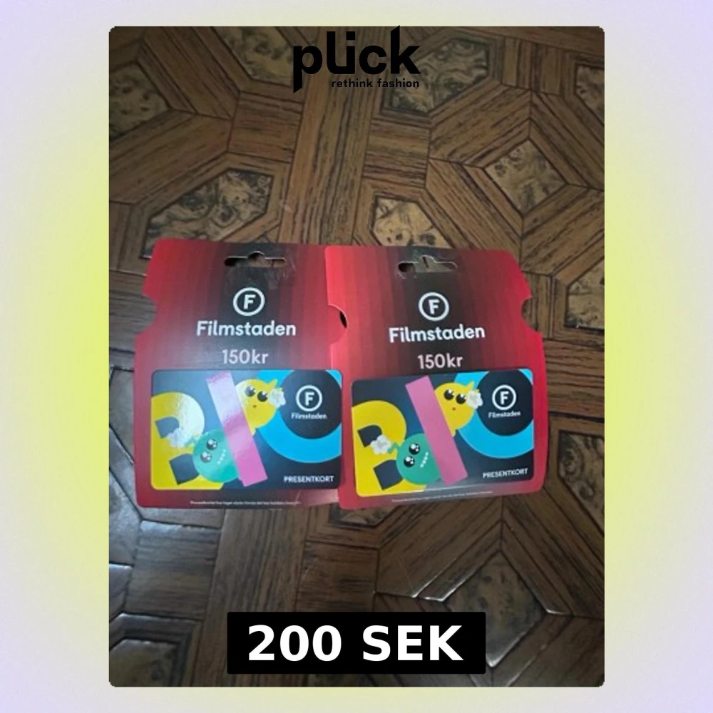 Två presentkort från Filmstaden, värde 150kr styck. Kortet har en färgglad design med tecknade figurer och popcorn på framsidan. Perfekt för biobesök eller som present till någon som älskar film. Du får båda två för 200kr vid snabb affär.