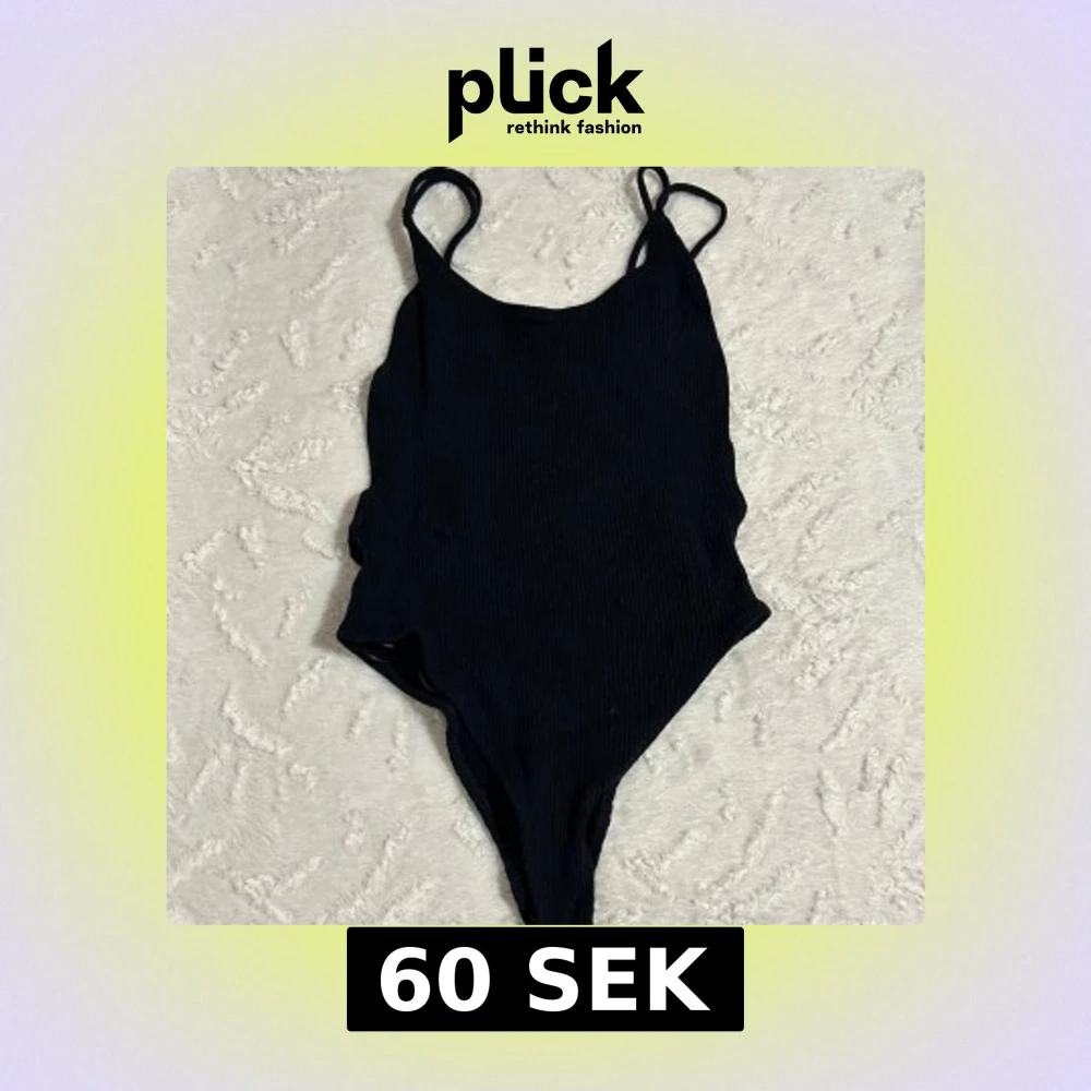 Snygg svart body från Pull&Bear med tunna axelband och ribbad struktur. Modellen har smickrande hög skärning och smala band i ryggen. Skriv vid frågor 🥰