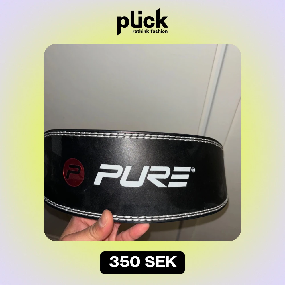Säljer ett svart träningsbälte från Pure i mycket bra skick. Bältet är gjort av skinn och har en vadderad insida för extra komfort. Det har vita sömmar och ett justerbart spänne med flera hål för perfekt passform. Perfekt för styrketräning och gympass!