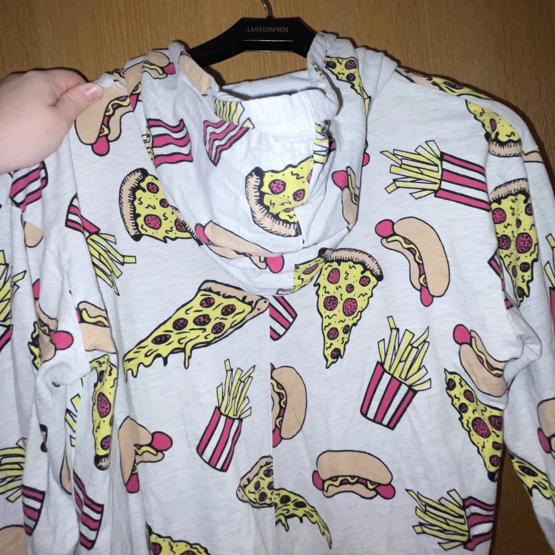 En rolig jumpsuit/byxdress med fickor och luva. Funkar även alldeles utmärkt att använda som pyjamas! Nytvättad från ett rökfritt hem, pälsdjur finns men inte på kläderna. 100kr eller bud.