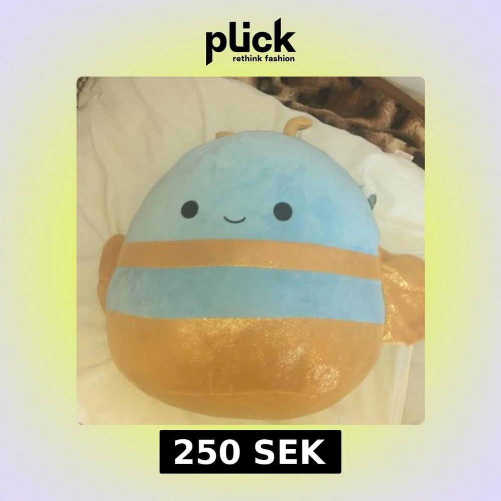 Möt Queen Bee från Squishmallows! En supermjuk och gosig gosedjurskudde i blått och guld med ett gulligt leende. Perfekt för att mysa med eller som en cool inredningsdetalj i ditt rum. Passar dig som älskar söta och trendiga samlarprylar.