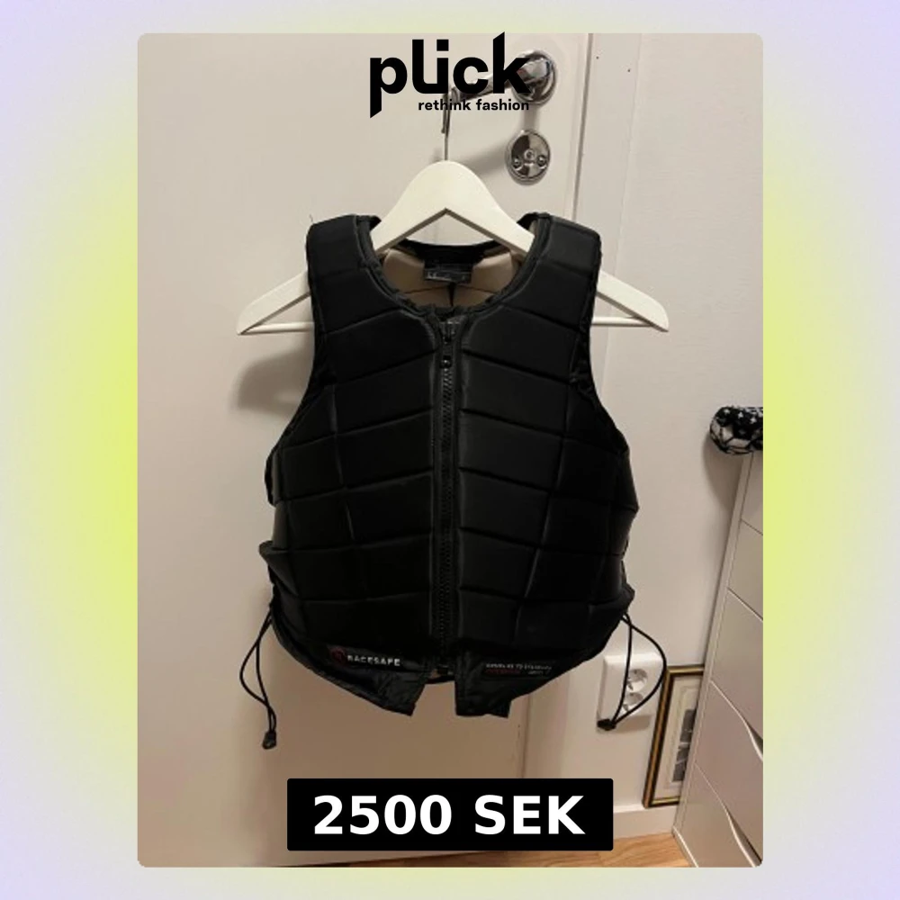 Säljer en svart säkerhetsväst från Racesafe i storlek S men den är justerbar i sidorna så passar både större och mindre. Endast använd på några tävlingar så i princip nyskick, förutom lite fläckar på insidan men det är inget som syns när den används. Köpt på hööks för 3549 kr
