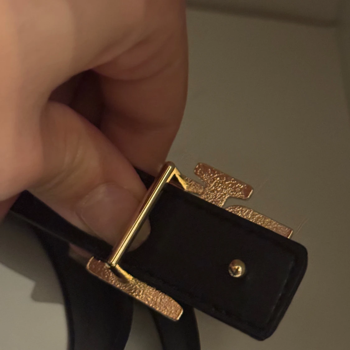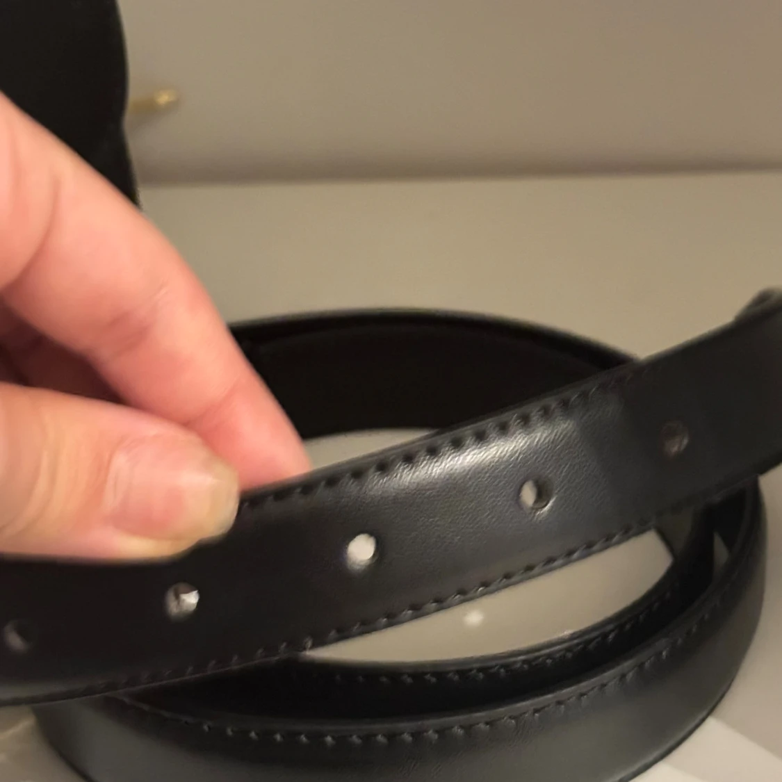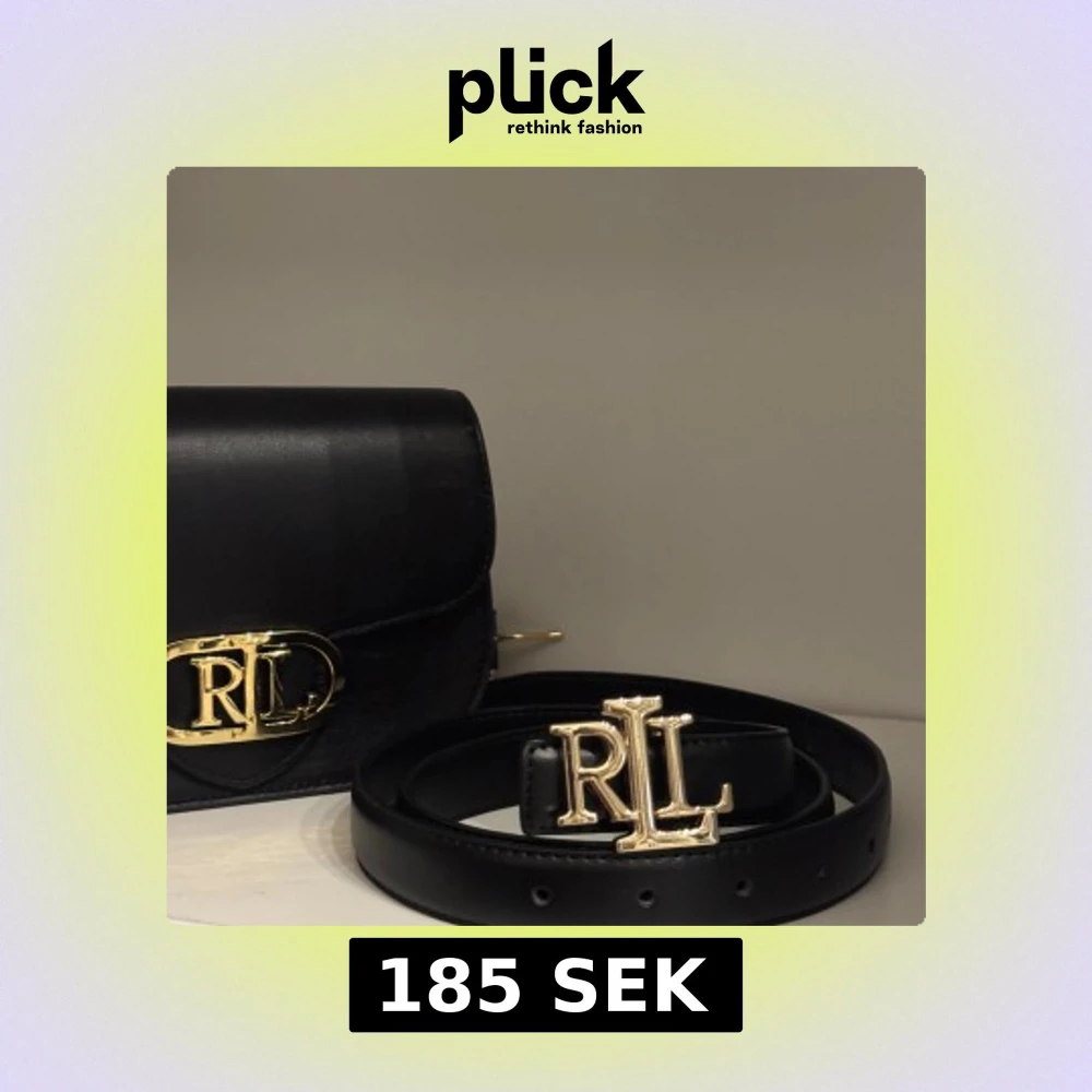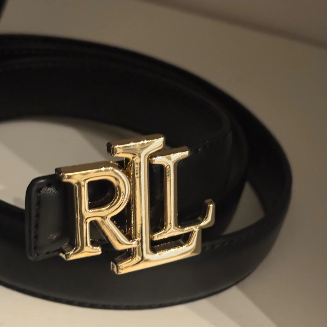 Snyggt svart bälte från Ralph Lauren i slätt skinn med ett stort guldfärgat RL-spänne framtill.110Cm
