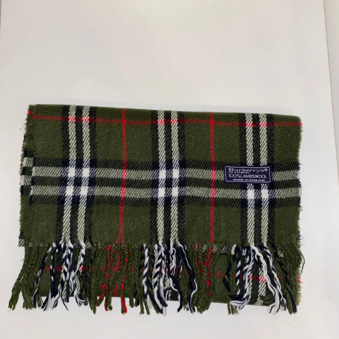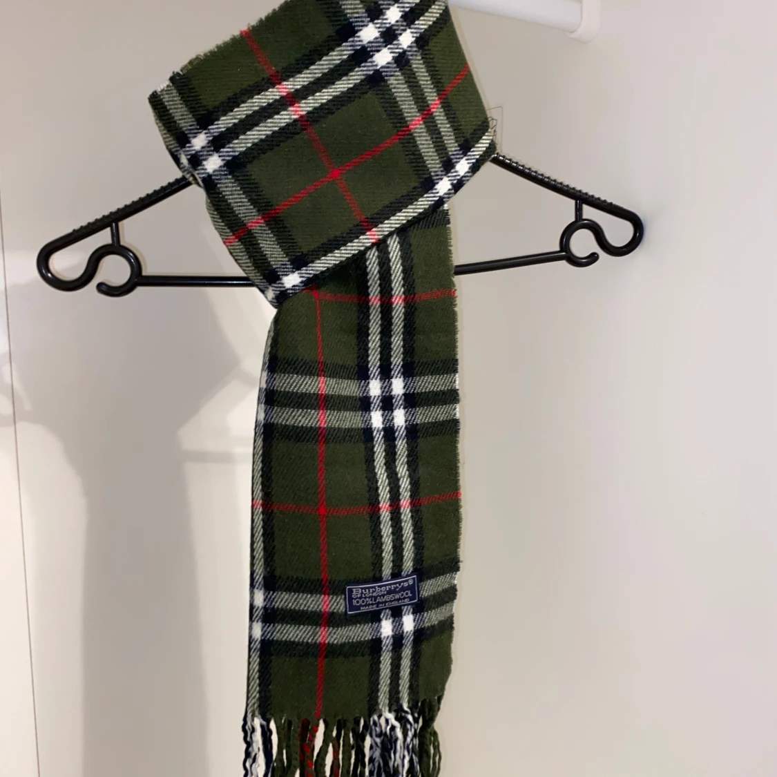 Säljer nu denna snygga halsduk från Burberry i mörk grön, Tillverkad i 100% lammull med klassiskt mönster och fransar i ändarna. Den är i mycket fint skick utan några defekter alls. Perfekt för att hålla dig varm och stilren under kyliga dagar. Hör av er vid minsta funderingar☺️