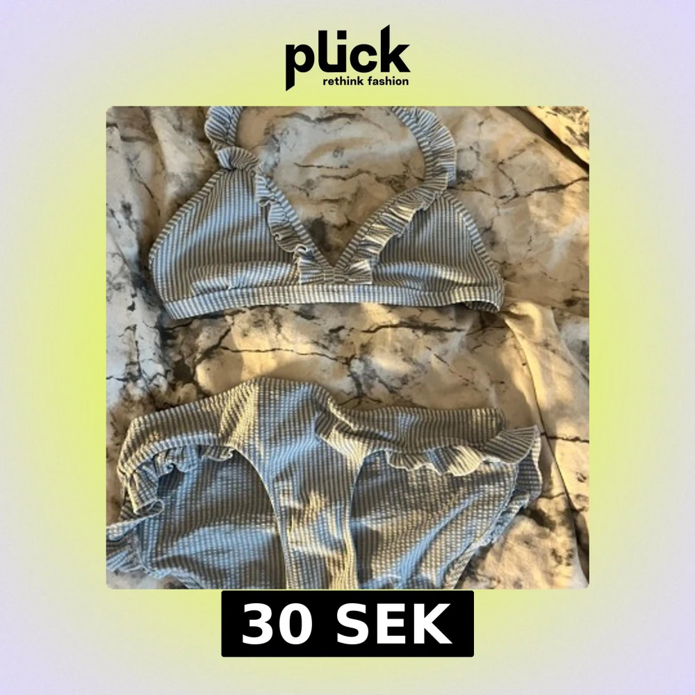 En jätte söt randig bikini från Lindex! Den är köpt på barnavdelningen men skulle säga passar s/xs också! Men är i fint skick o syns inte den e använd!