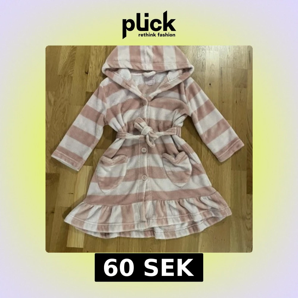 Supermjuk morgonrock i fleece med breda rosa och vita ränder, huva, knappar framtill och knytskärp i midjan. Två hjärtformade fickor och volangkant nertill ger en gullig touch. Perfekt för mysiga dagar hemma.