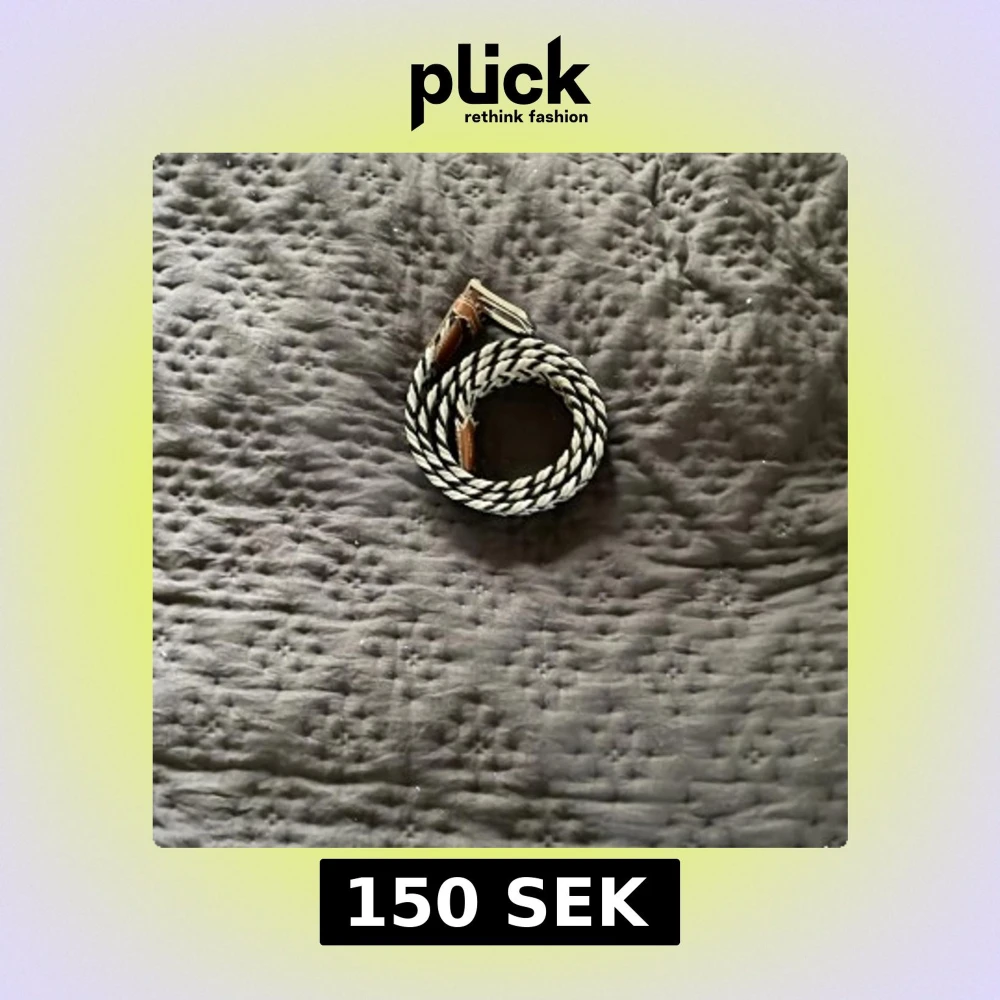 Säljer ett snyggt randigt bälte i svart och vitt med flätad design. Bältet har bruna läderdetaljer vid spännet som ger en schysst kontrast. Perfekt accessoar för att lyfta din outfit med en cool touch.