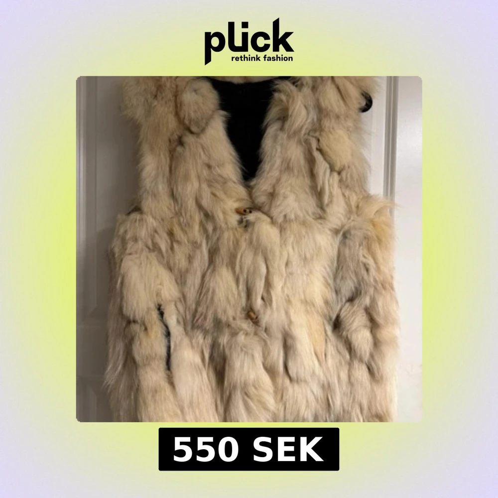 Säljer en beige pälsväst med fluffig look och quiltad svart insida. Storlek S , skriv vid fler frågor