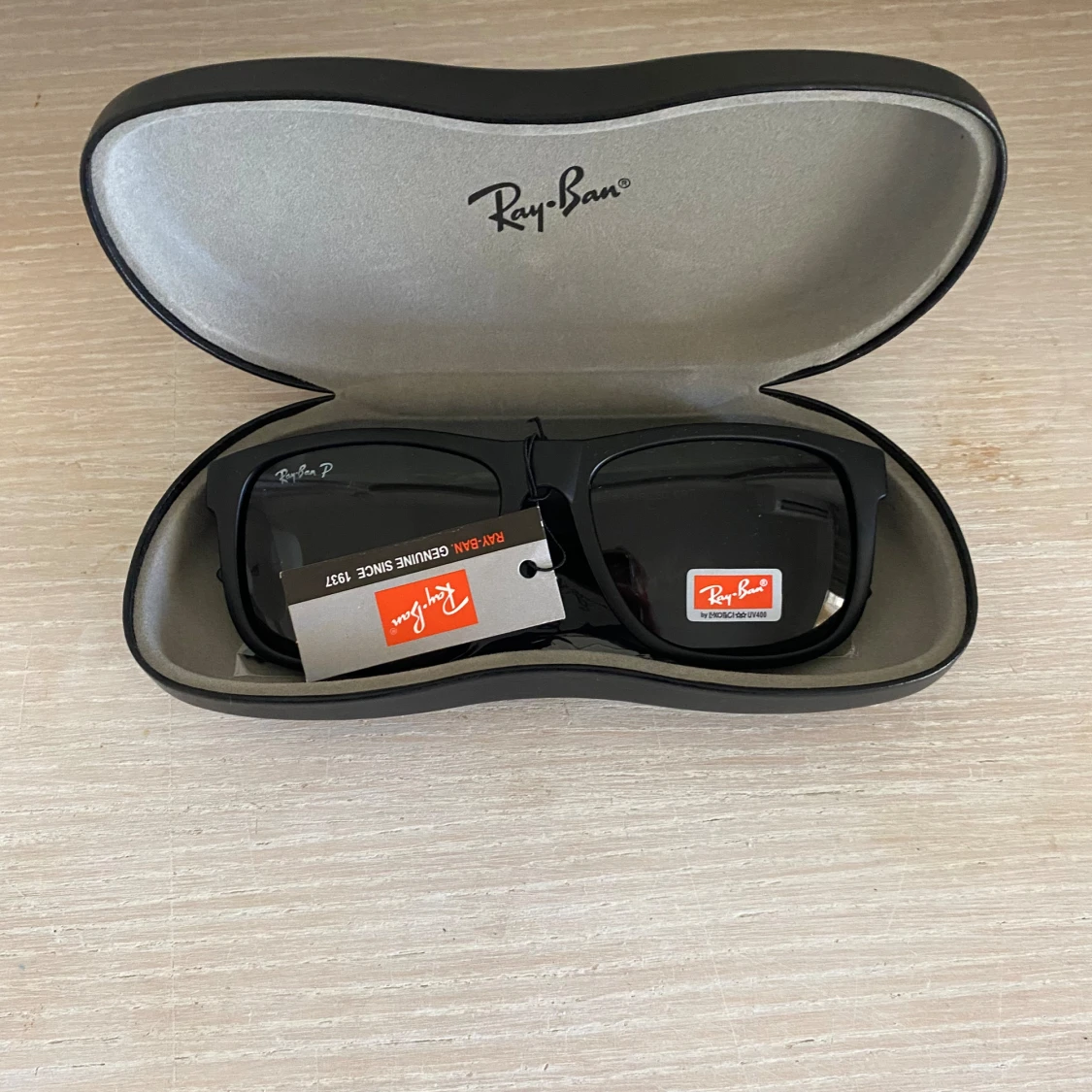 Ett par klassiska Ray-bans i färgen svart. Helt nyköpta och oanvända plus att skalet kommer med. Köpta utomlands så vet ej om de är riktiga eller inte.