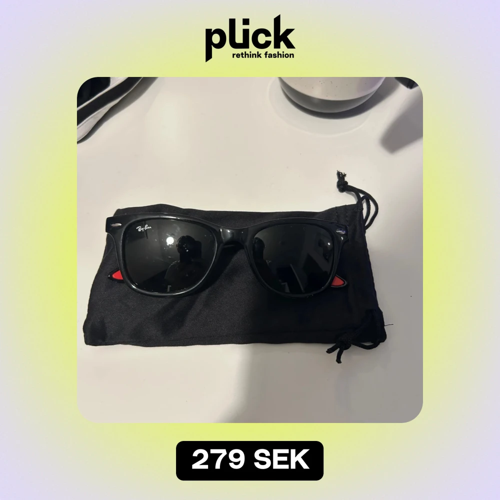 Säljer ett par svarta RayBan solglasögon, en liten skråma som man kan se på 3e bilden