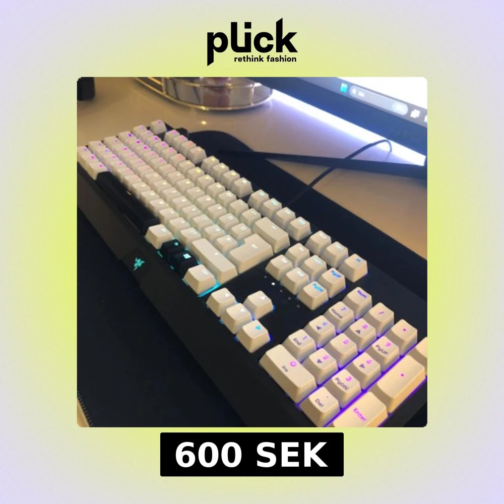 Fräscht razer tangentbord med helt nya vita tangenter, original tangenter följer med. Inga fel eller märken på tangentbordet.