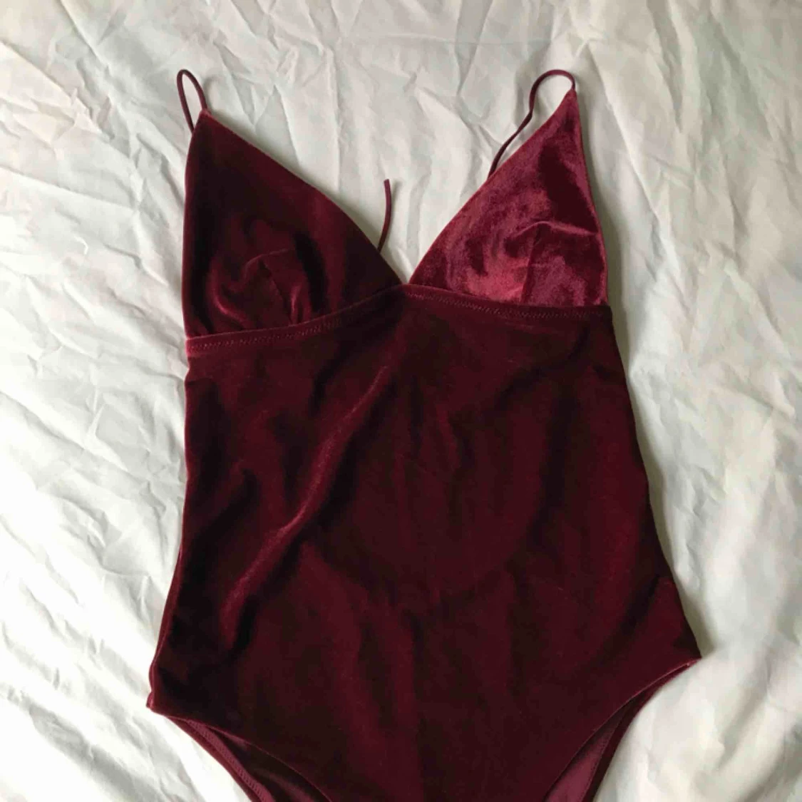 Vinröd baddräkt i sammet. Den har öppen rygg och är knappt använd! Swish och frakten ingår inte.