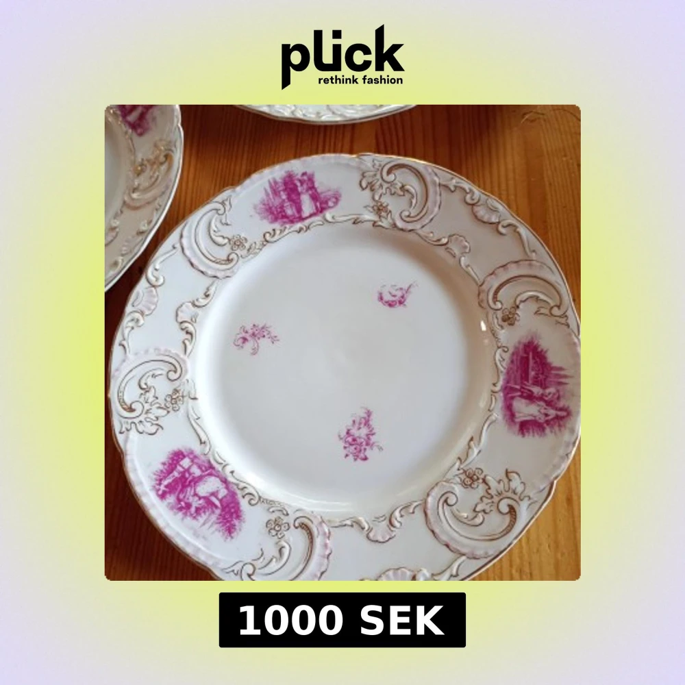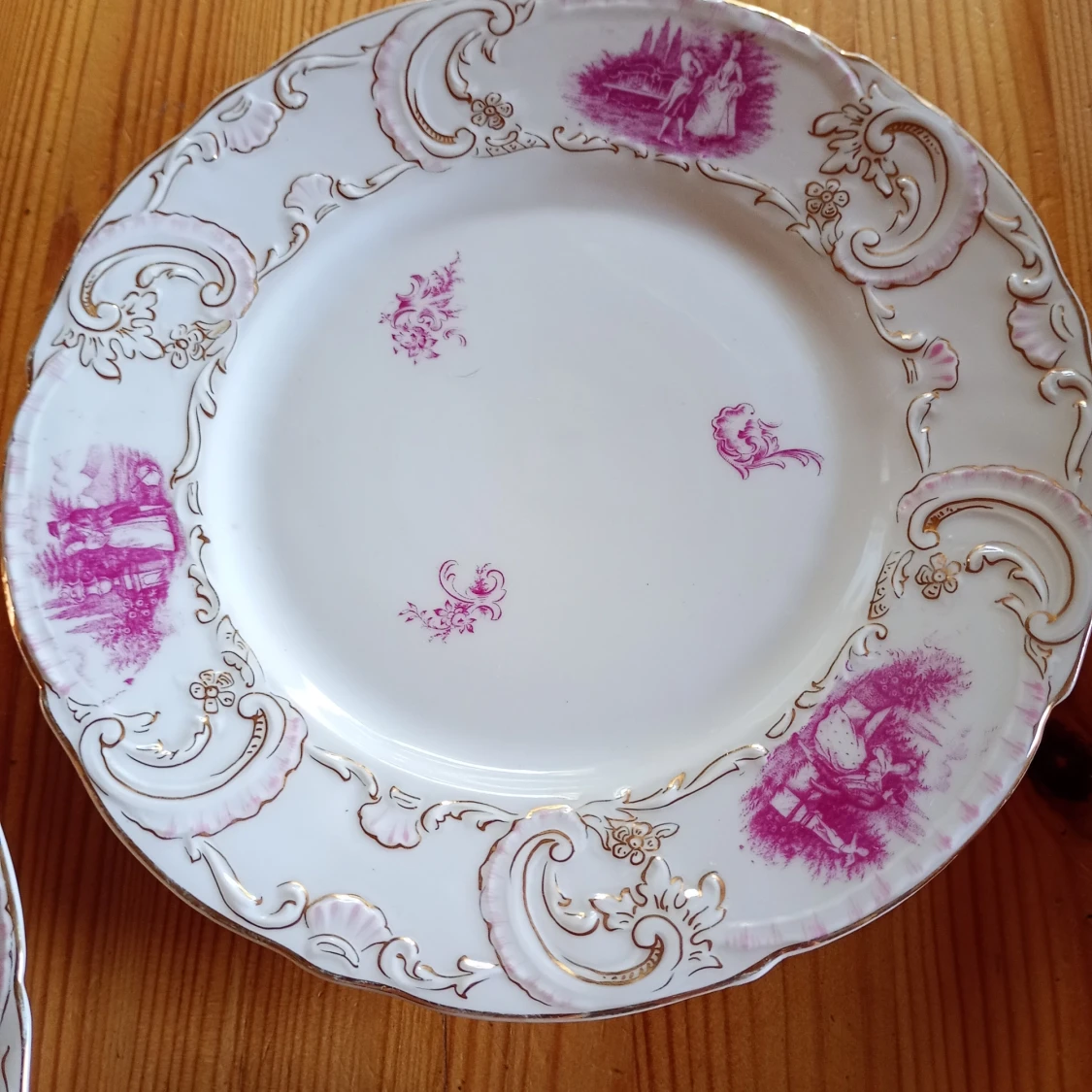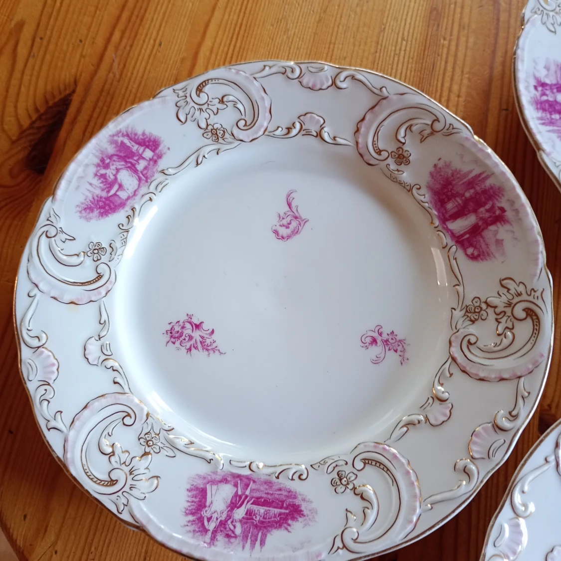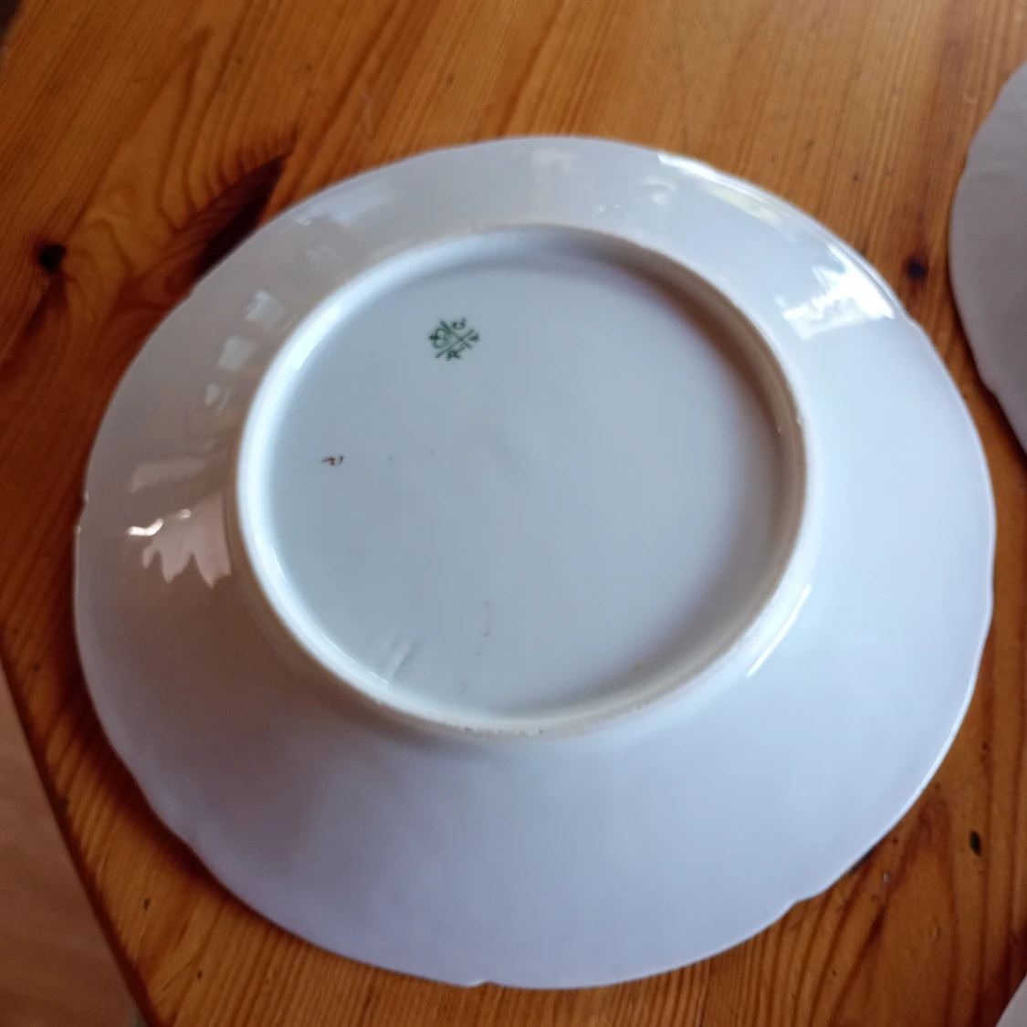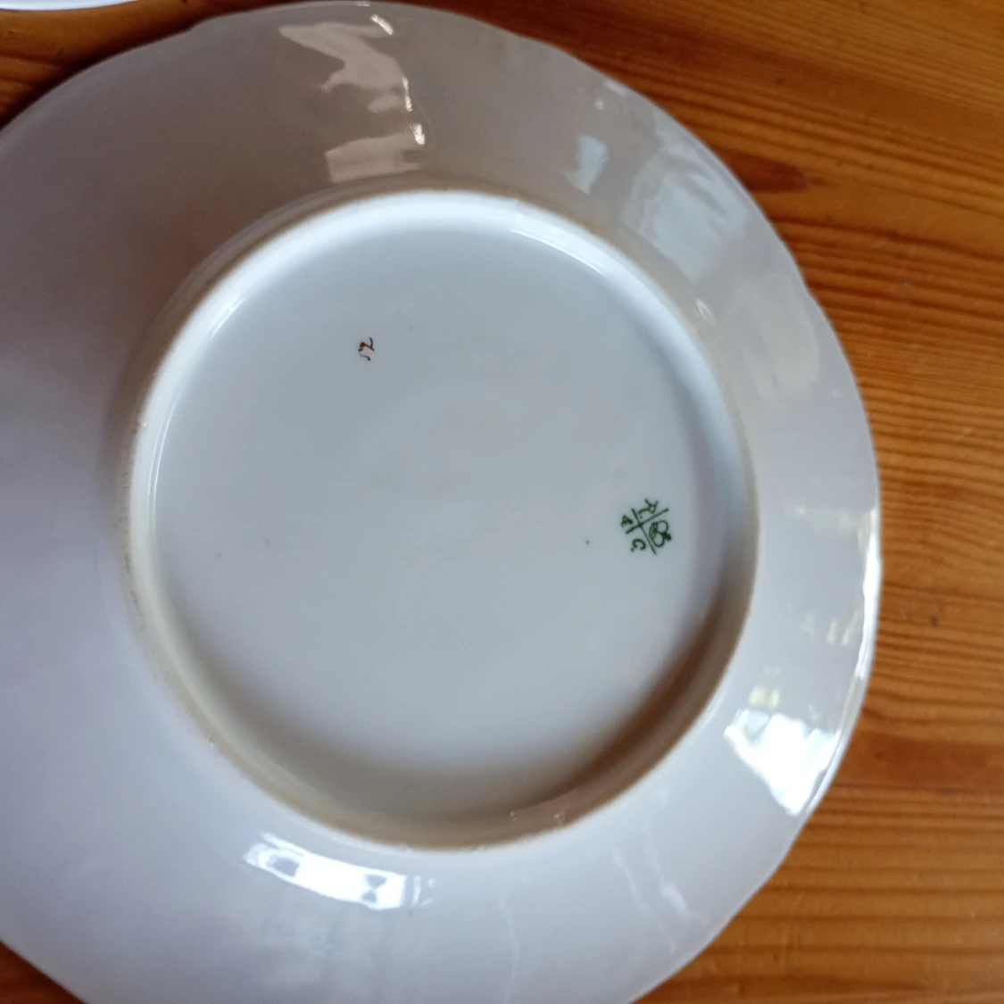 Retro/Vintage Tallrikar med mönster och märkning under varje tallrik med R &C mm. Tre stycken . Mycket fint skick.