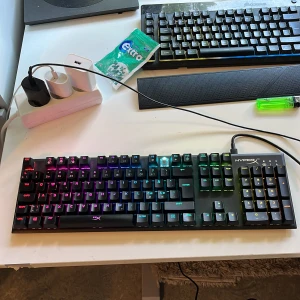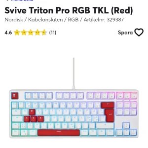 Vitt Gamingkeyboard med röda switches. Inga skador. Finns software för att ändra färgerna. Helt vita keycaps finns. Nordisk layout. Säljer då jag ska köpa en mindre keyboard.
