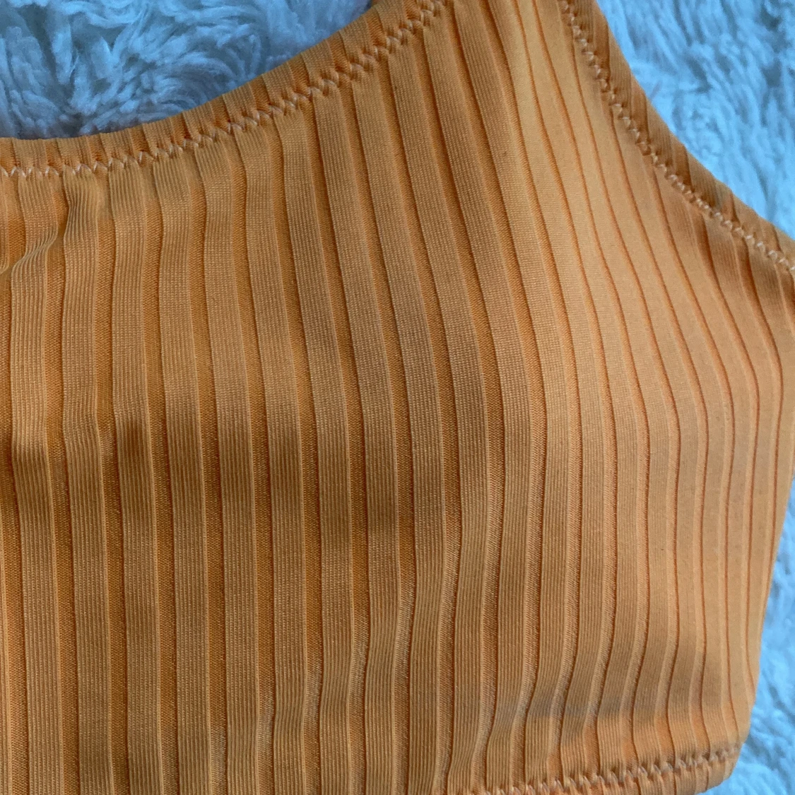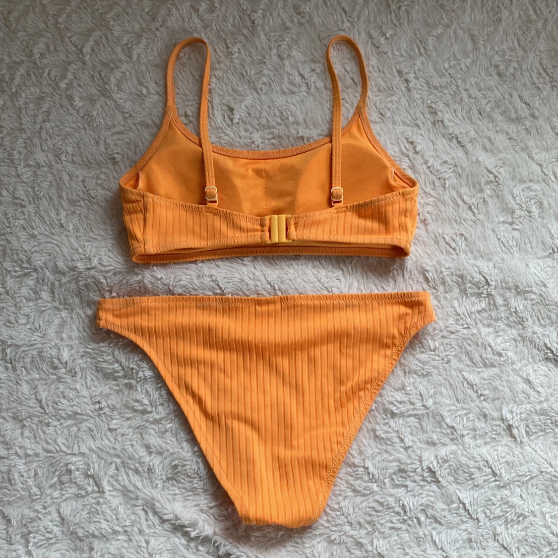 En neonorange bikini med både överdel och underdel. Bikinin är i storlek 36/S och man kan justera toppens band.