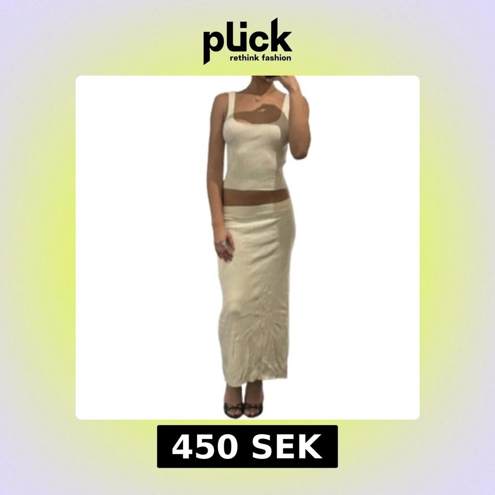 Säljer detta ribbade set från Gina Tricot i ljusbeige. Toppen är ärmlös med breda axelband och har en kroppsnära passform. Perfekt för dig som gillar en stilren och enkel look.