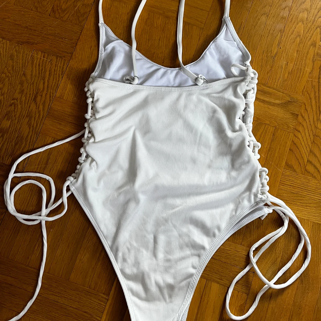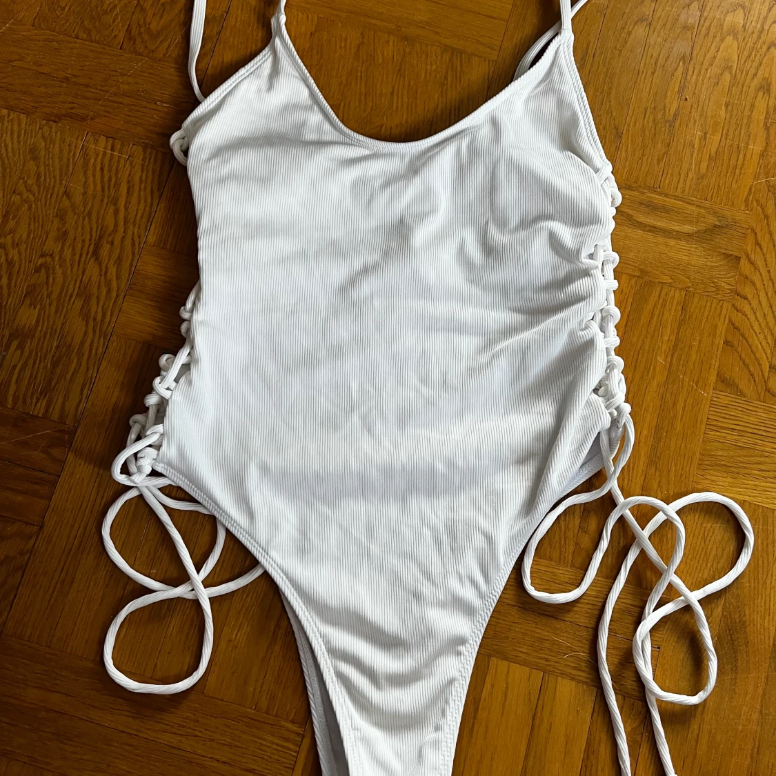 Oanvänd baddräkt från HM. Storlek S-M. Highwaisted. Mjukt ribbat tyg med knytning i sidorna. Frakt 66 spårbart